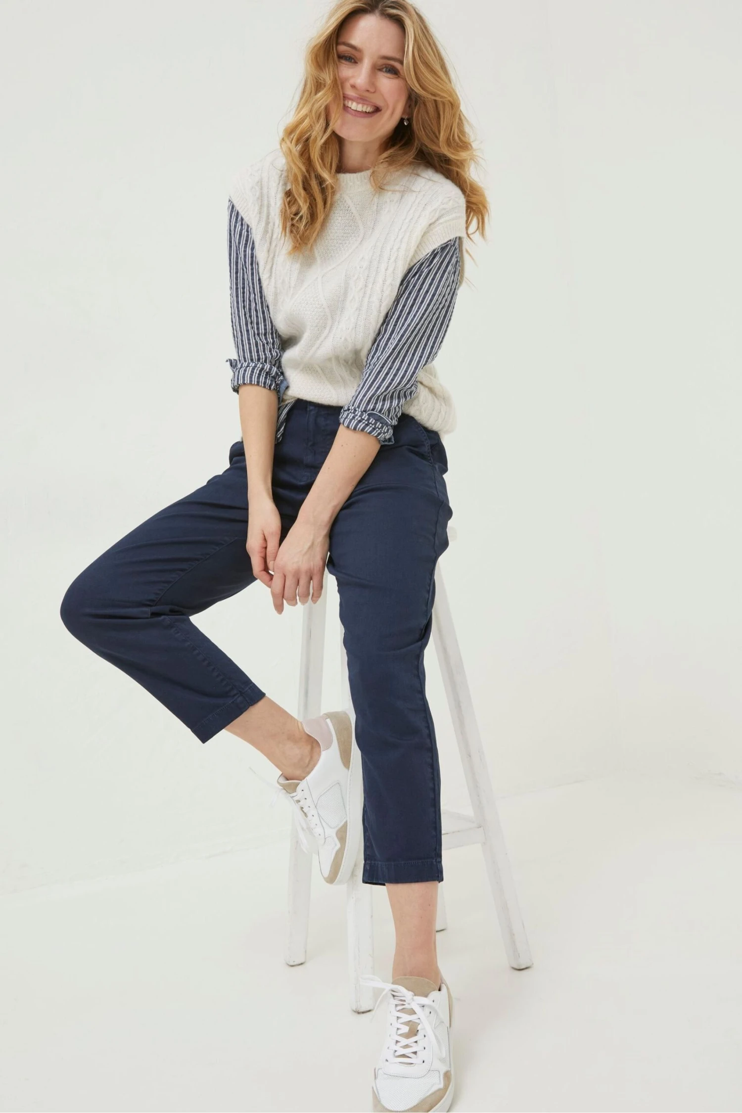 Perfect for those days when you are on the go, our relaxed and hardworking denim cotton chinos are ready to keep up with everything you need to throw at them. With a hint of stretch and a gently tapered shape, their ankle-length style is ready to wear with everything.