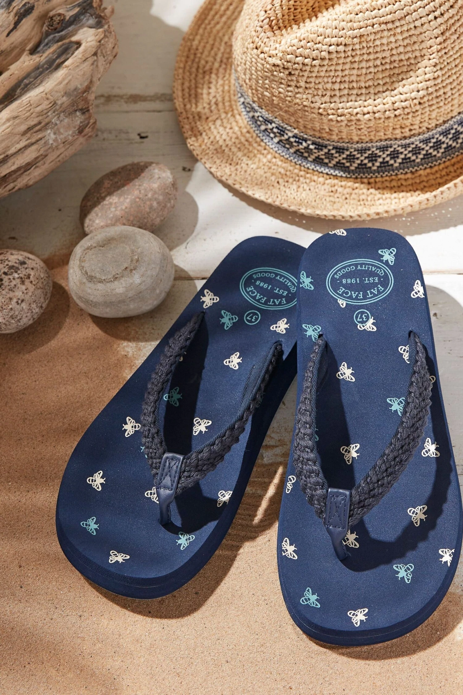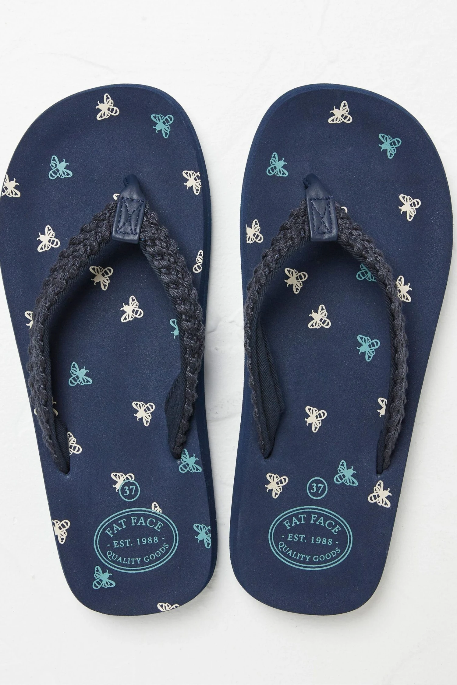FatFace Blue Bay Bee Print Flip Flops