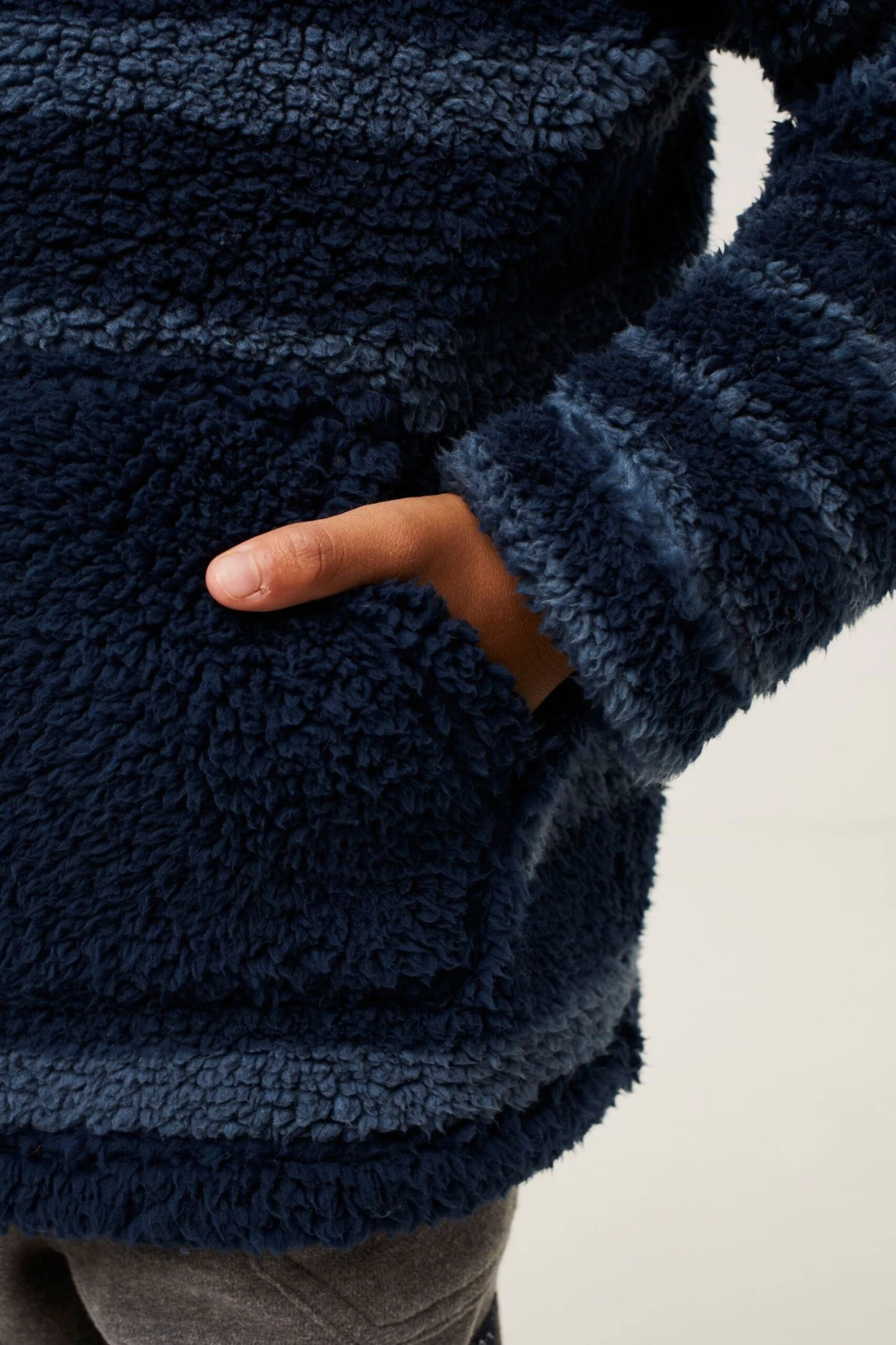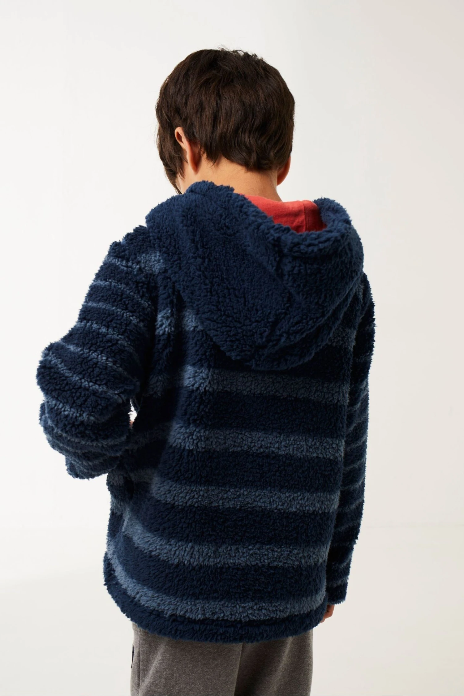 This stripe fleece is made for comfort. Perfect for lazy days and wild adventures, it features a handy kangaroo pocket, cosy hood and zip neck fastening. Crafted from a cotton and polyester blend it comes in a laid back fit and looks great over a tee with jeans (or joggers) and trainers.