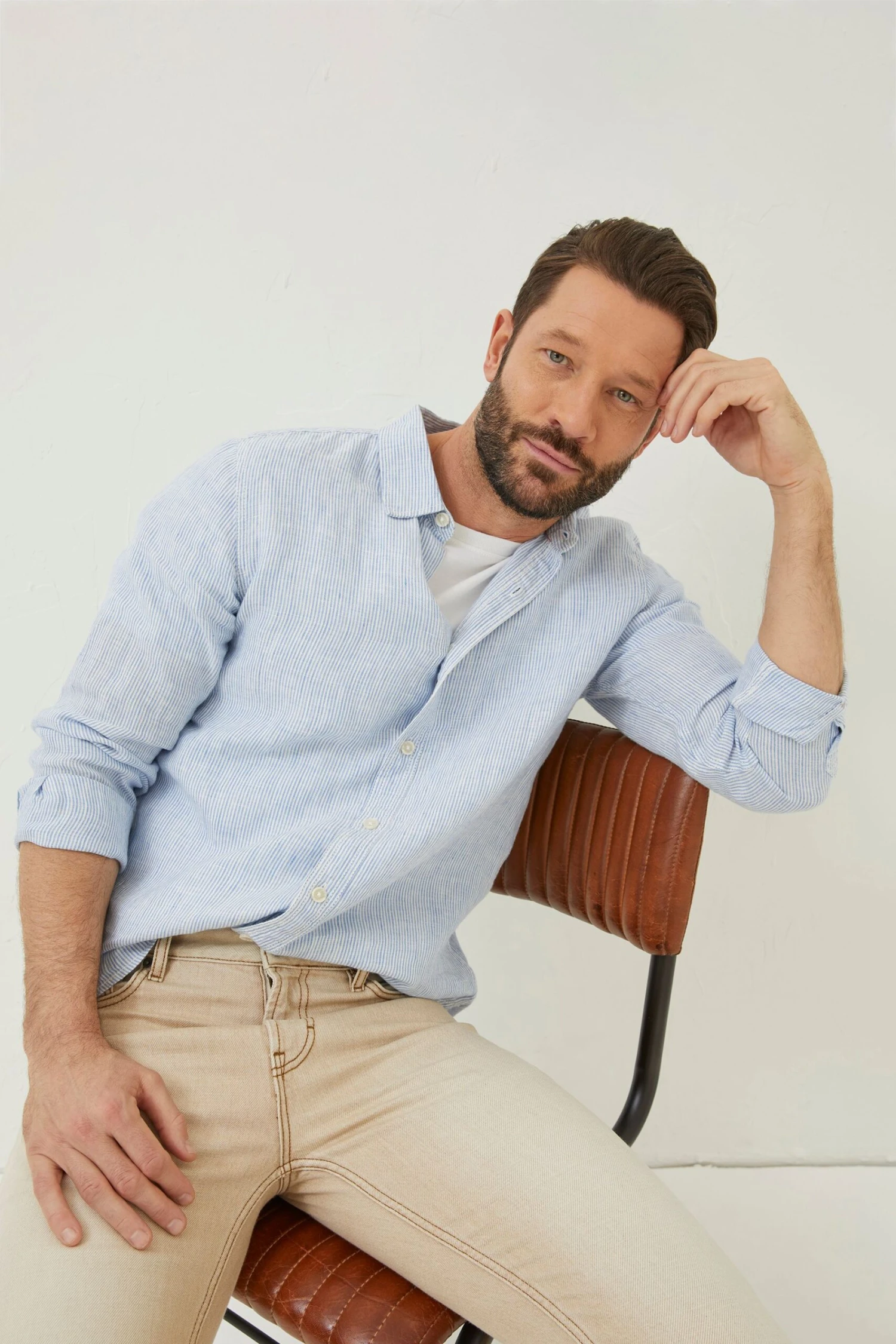 FatFace Blue Stripe Linen Shirt