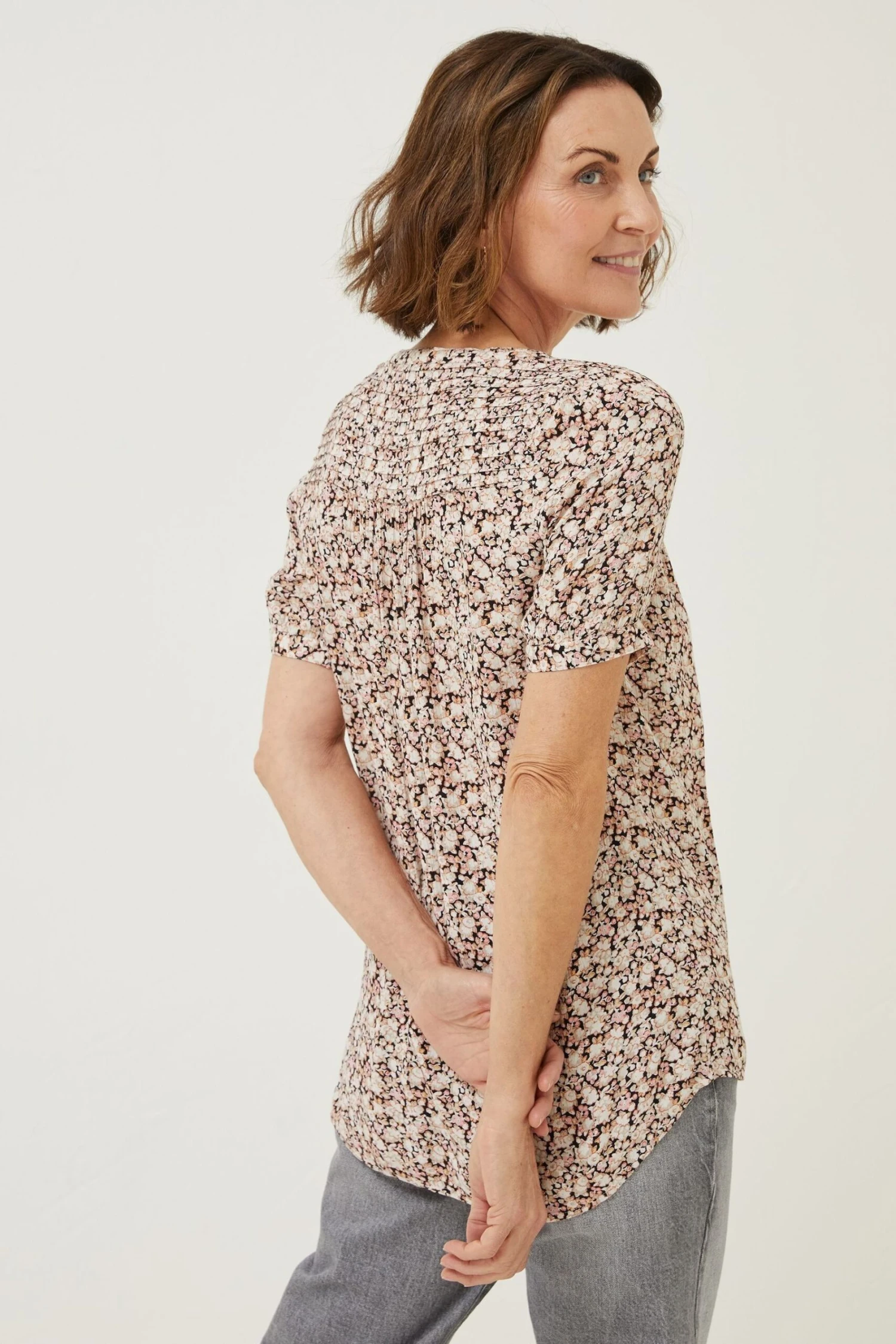 Add this statement piece to your wardrobe this season. Made from a supersoft and breathable viscose you can stay comfortable and stylish all day long. Featuring a button-up neckline, short sleeves and a pretty floral print. For an easy style, simply pair this with jeans and boots.