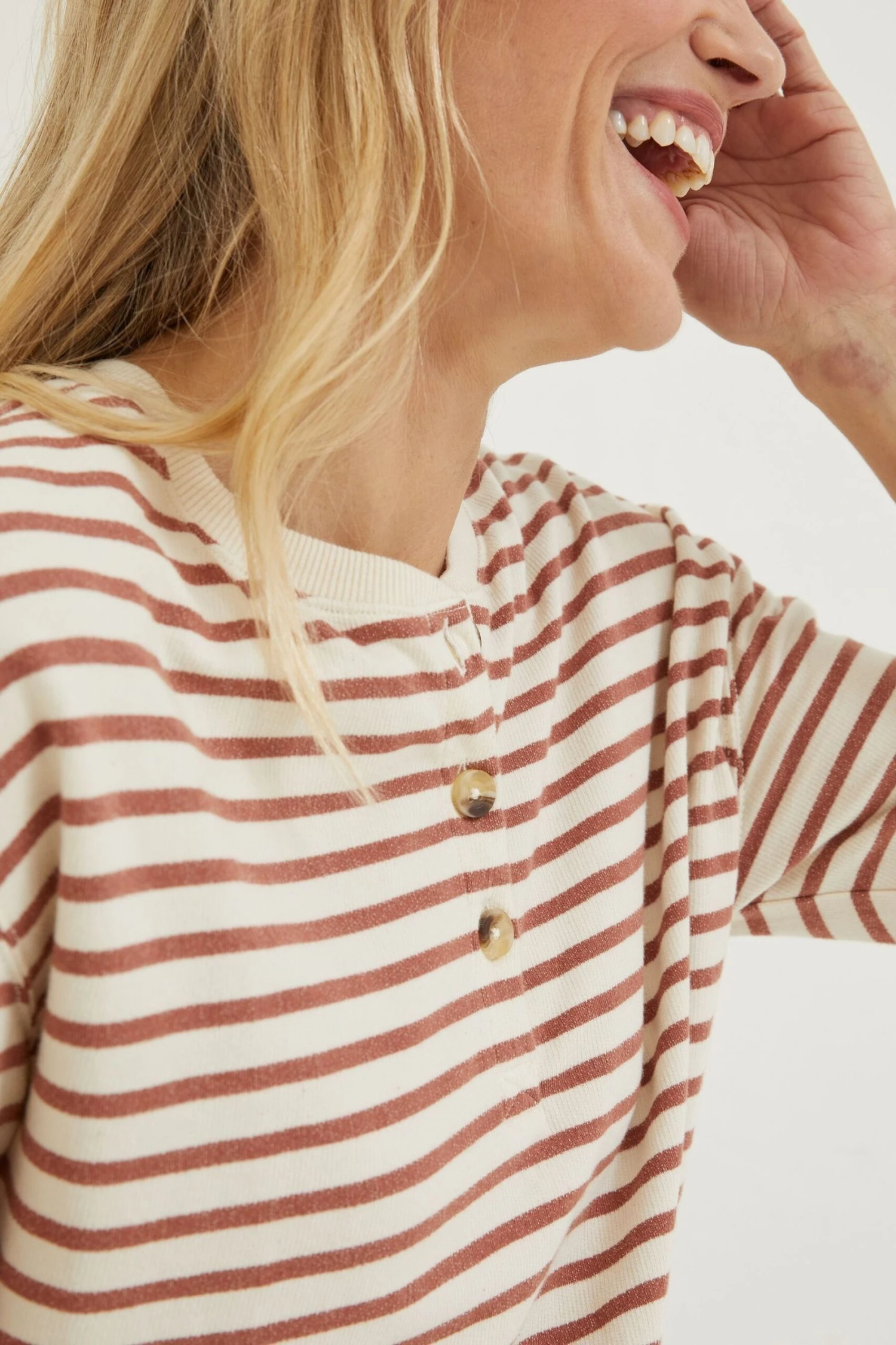 Oh-so-comfy, nothing beats a laidback sweat on casual days. Made from 100% supersoft and durable cotton, our Southbourne sweat looks as good as it feels. In a relaxed fit and classic stripe design, it’s finished with a stylish tortoiseshell button-up neckline and three-quarter length sleeves.