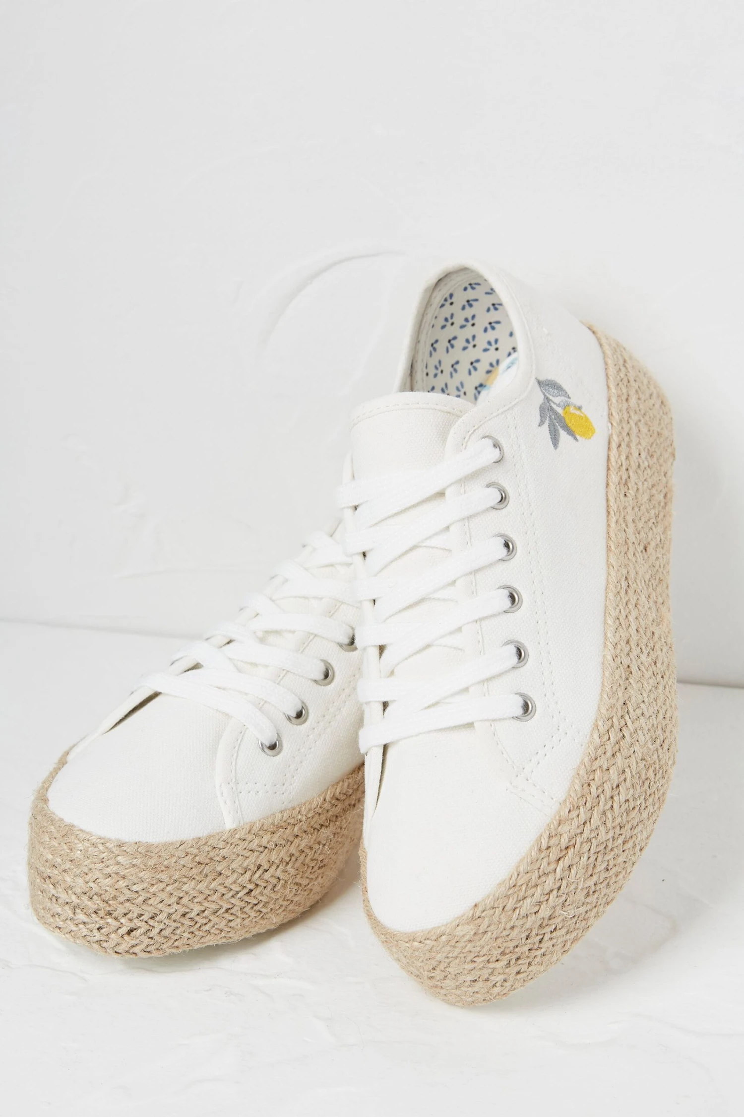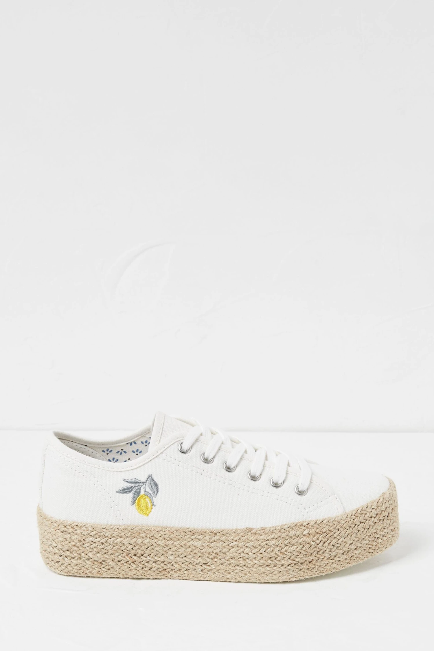 FatFace Francesca Lemon Embroidered Platform White Trainers