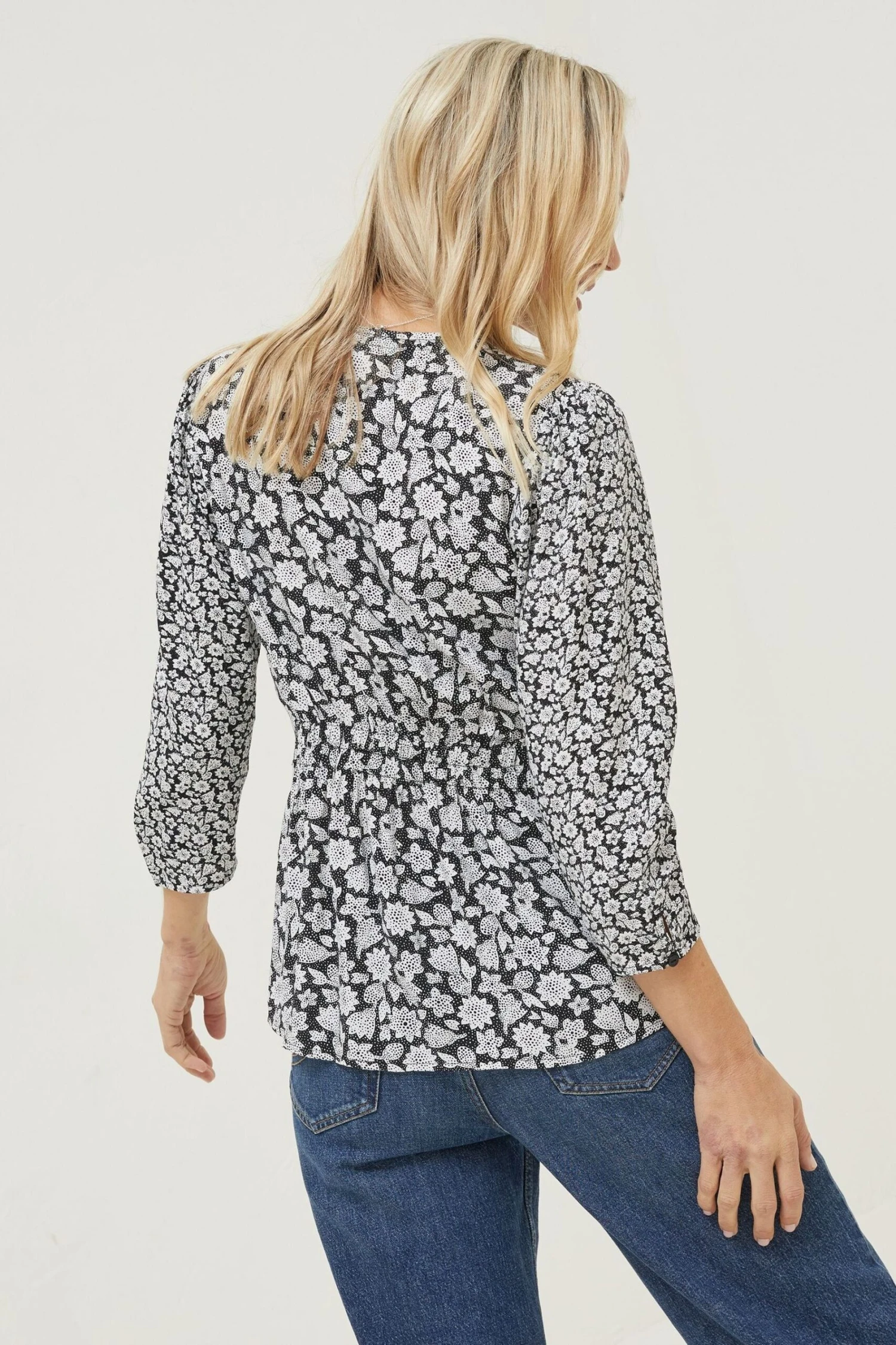 This blouse is perfect for an instant style boost. Made from supersoft and breathable viscose for all day comfort. Featuring a beautiful floral print, low cut neckline, long sleeves and wrap-around waist for a fitted look. Simply style this with jeans and boots.