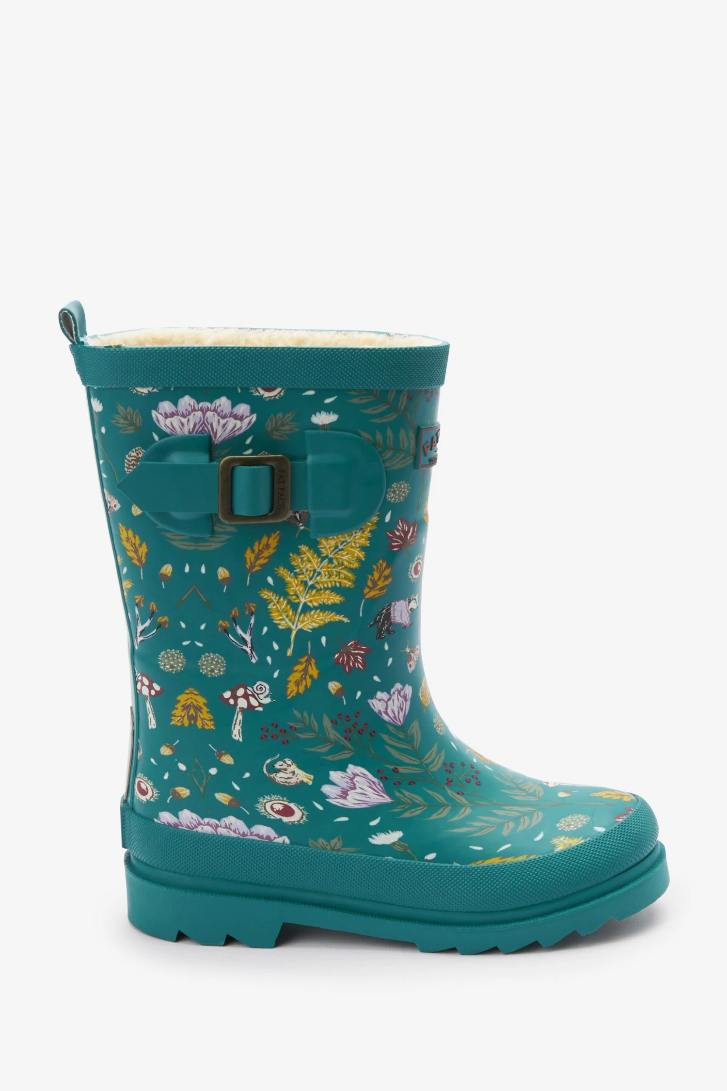 Puddle proof and wet-play ready, these all-over printed wellies from FatFace keep their feet warm and dry whatever the weather. Designed in a calf height with all-over print, they feature a pull tab for easy fitting, warm borg inner soles and a grippy outer sole for comfort.