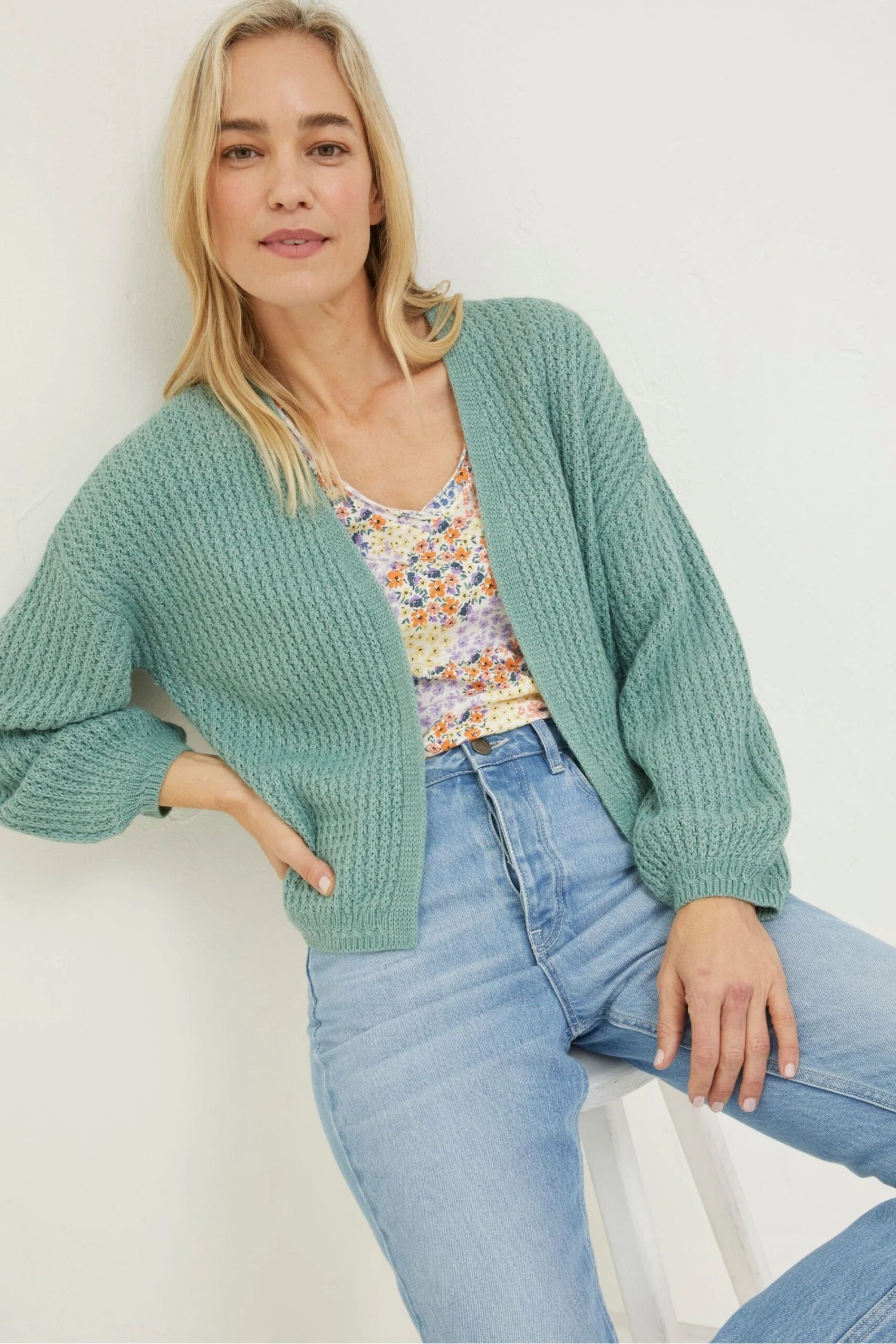 This pretty cardigan is the perfect layer for chilly days. With flattering balloon sleeves and a cool, cropped bolero shape, it is the perfect finishing touch to go with any outfit.