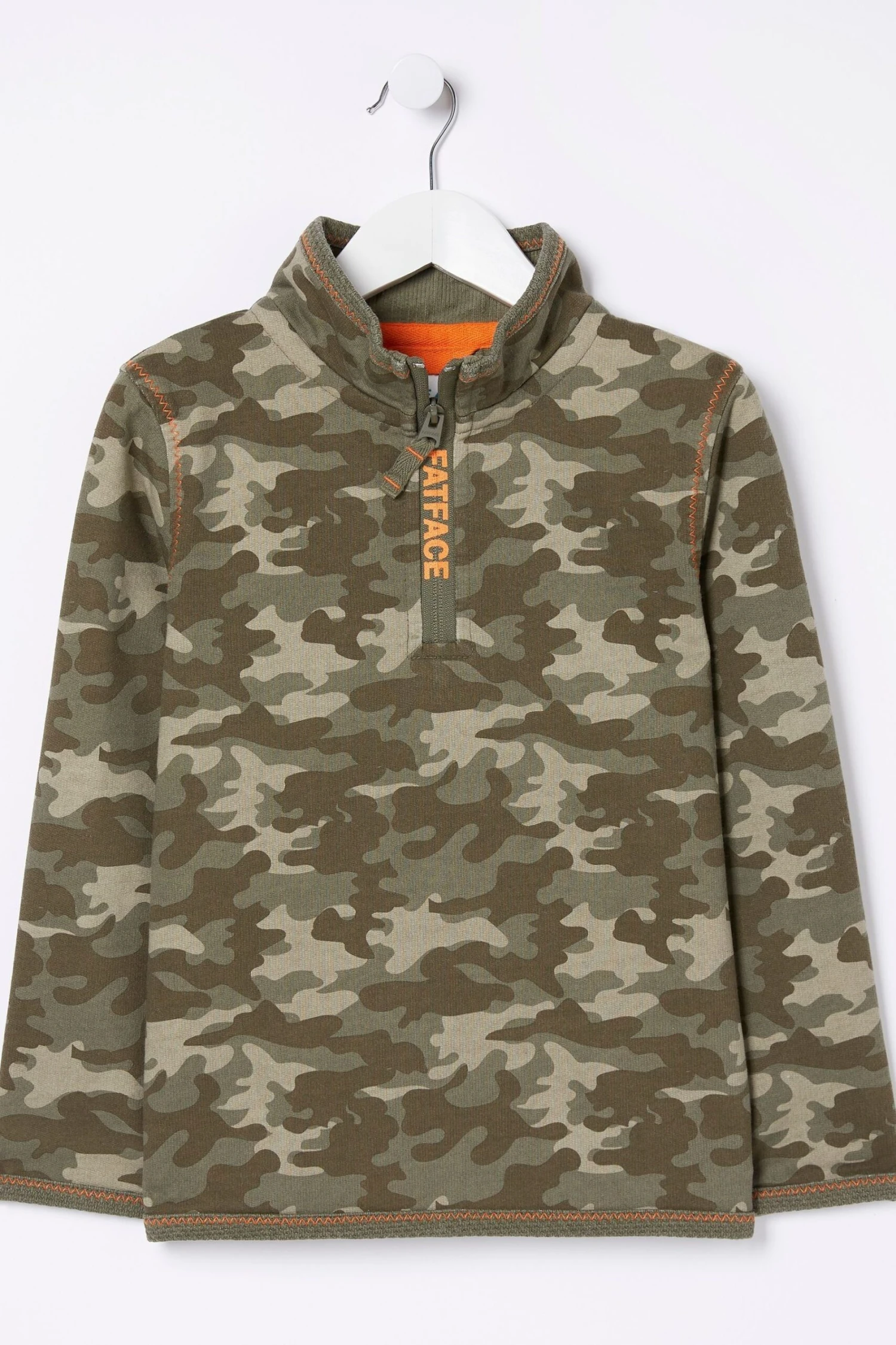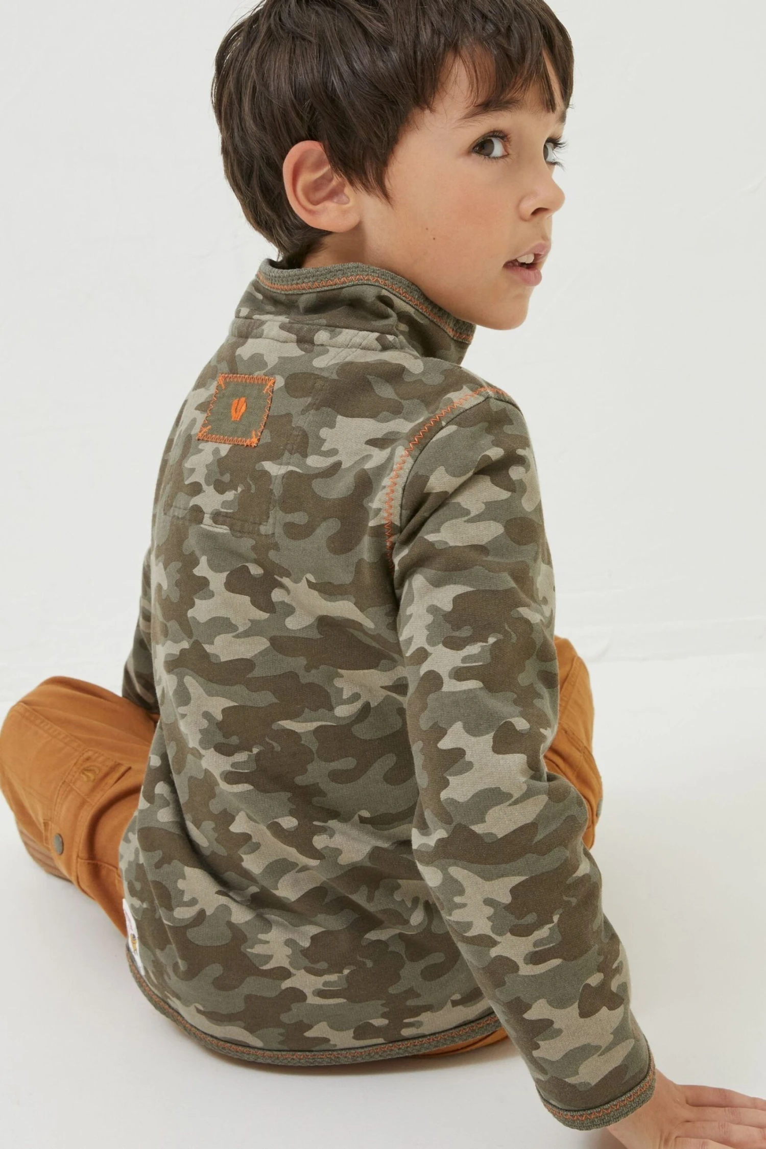 Get him kitted out for anything in our camo print sweatshirt. The perfect layer for cooler days, this sweat is oh-so-comfy and comes complete with a high collar to block out the wind and zip neck fastening. Team it with a t-shirt, jeans and trainers to complete the look.