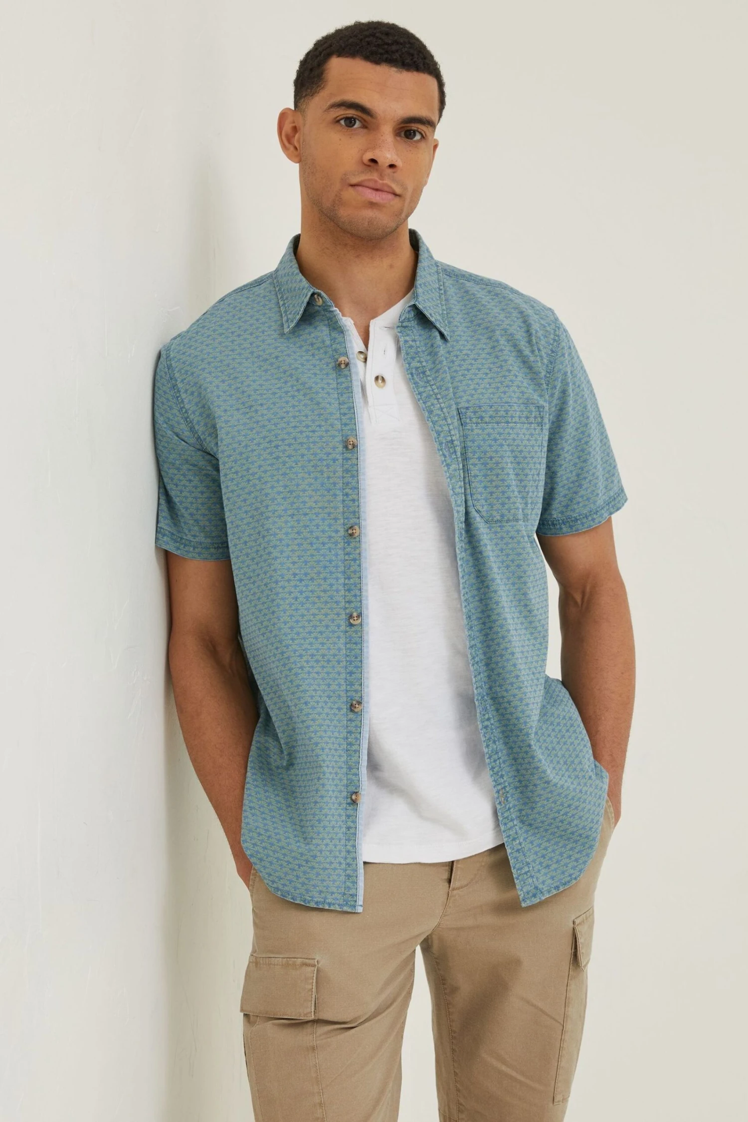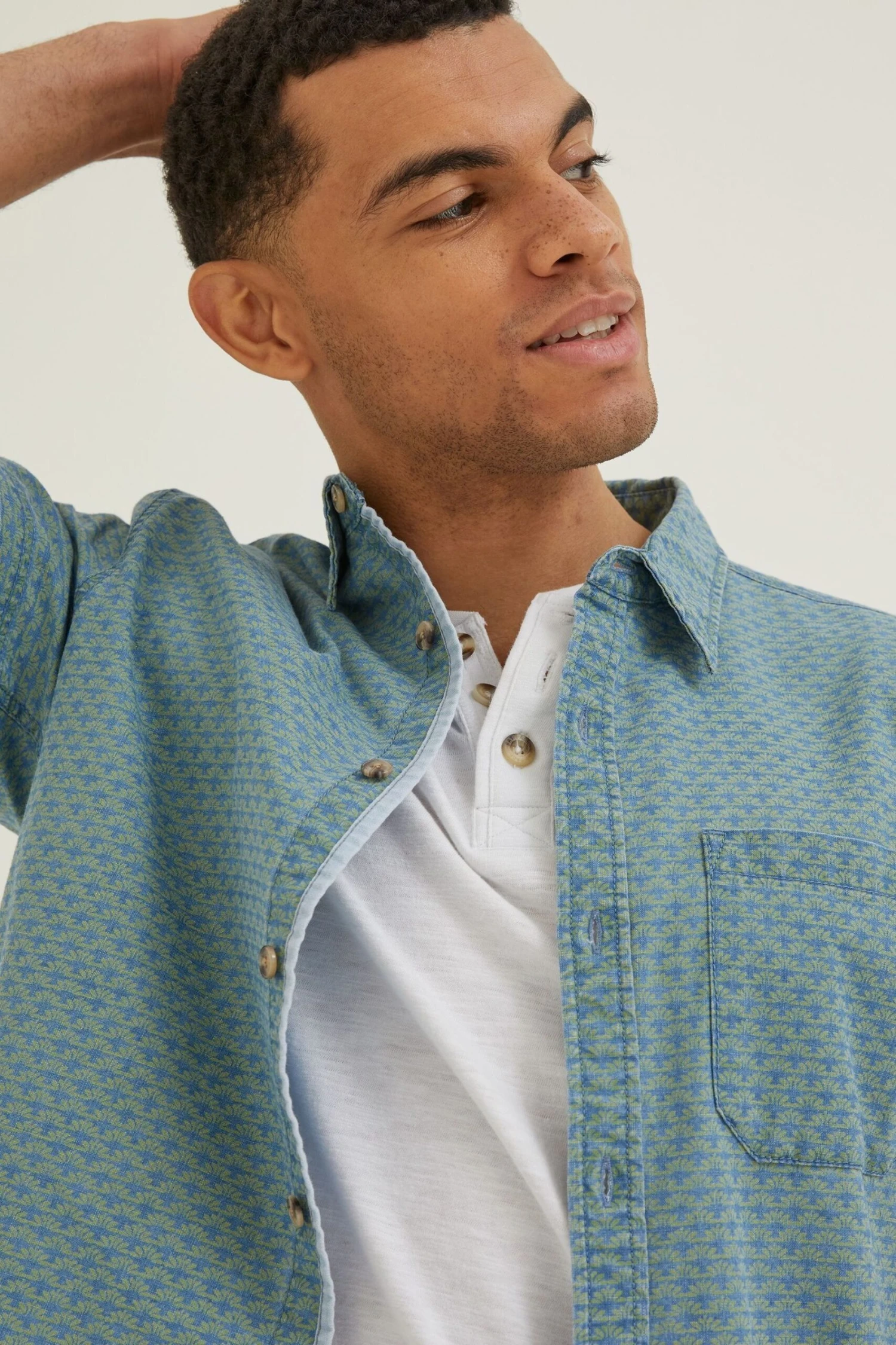 Get ready for sunshine. This Geo Indigo Print Shirt is perfect for warm sunny days, crafted from lightweight cotton for a comfortable breathable fit. Also featuring a geo print design, turndown collar, short sleeve design and a single chest pocket. Try styling this with a t-shirt and jeans on spring days or pair it with shorts in the summer.