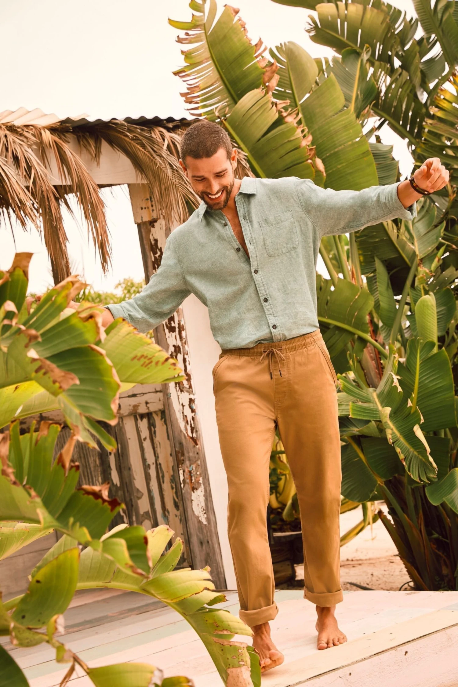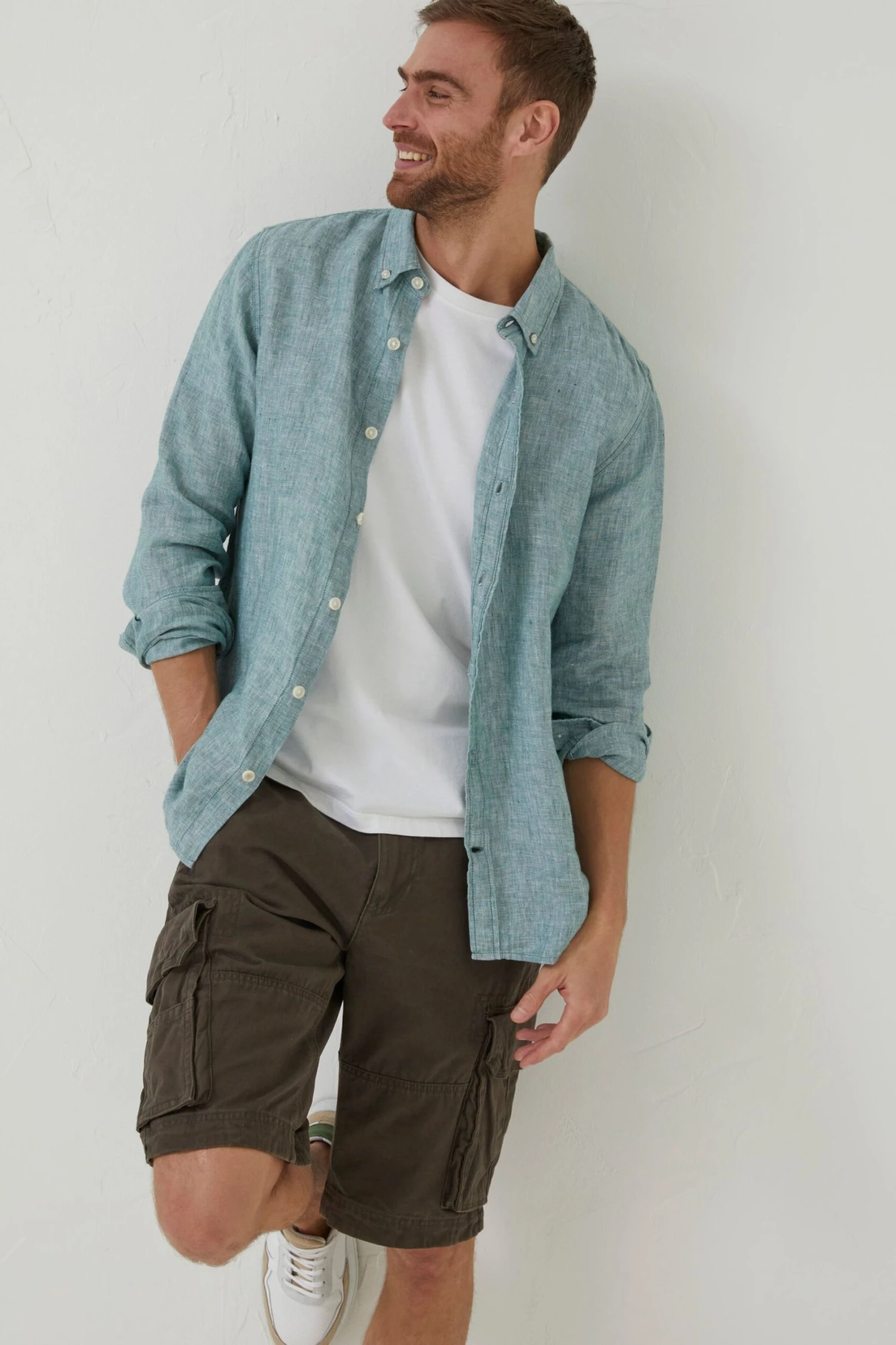 FatFace Green Plain Linen Shirt