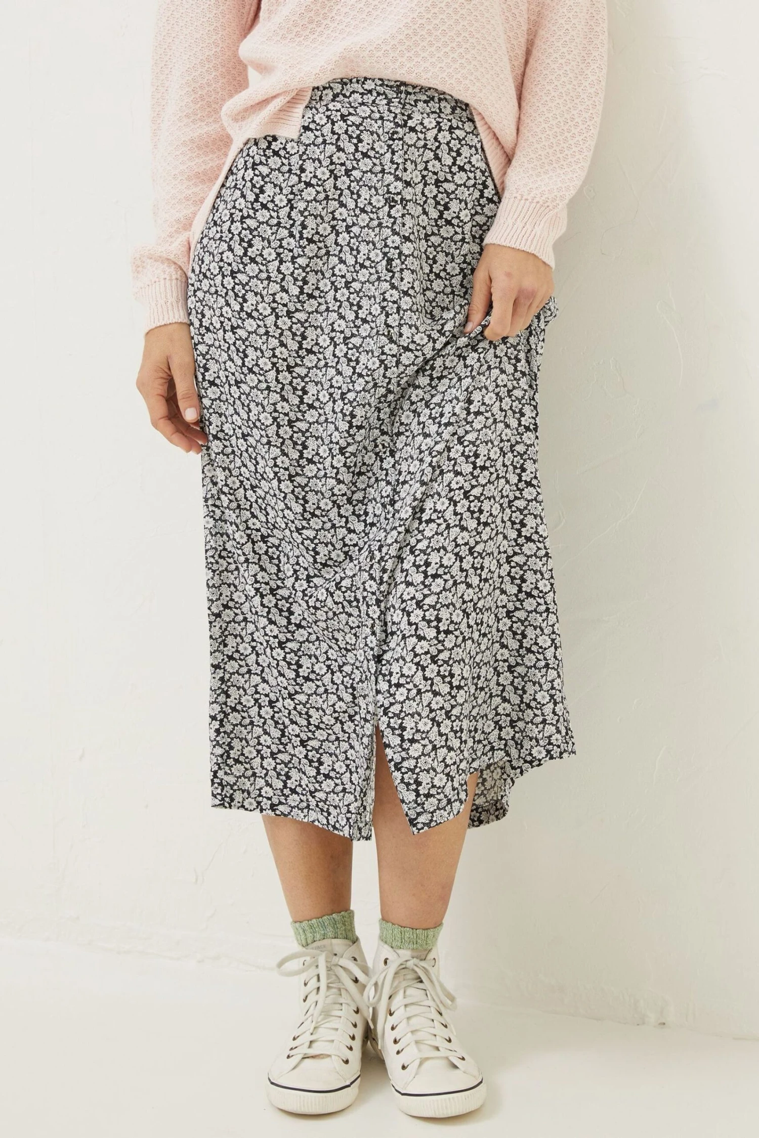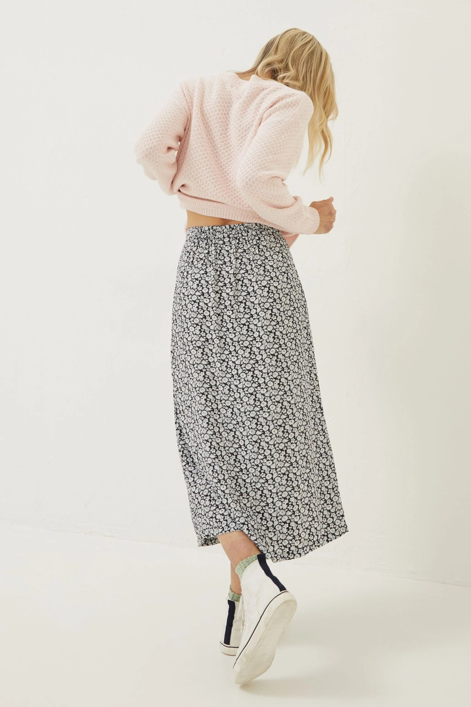 Add some easy style to your wardrobe this season with the Hayward Blush Midi Skirt. Made from soft and breathable viscose for all day comfort. Featuring a button-up front, open leg slit and pretty floral design. Still feeling the chill? Pair this with a lightweight knit for a complete look.