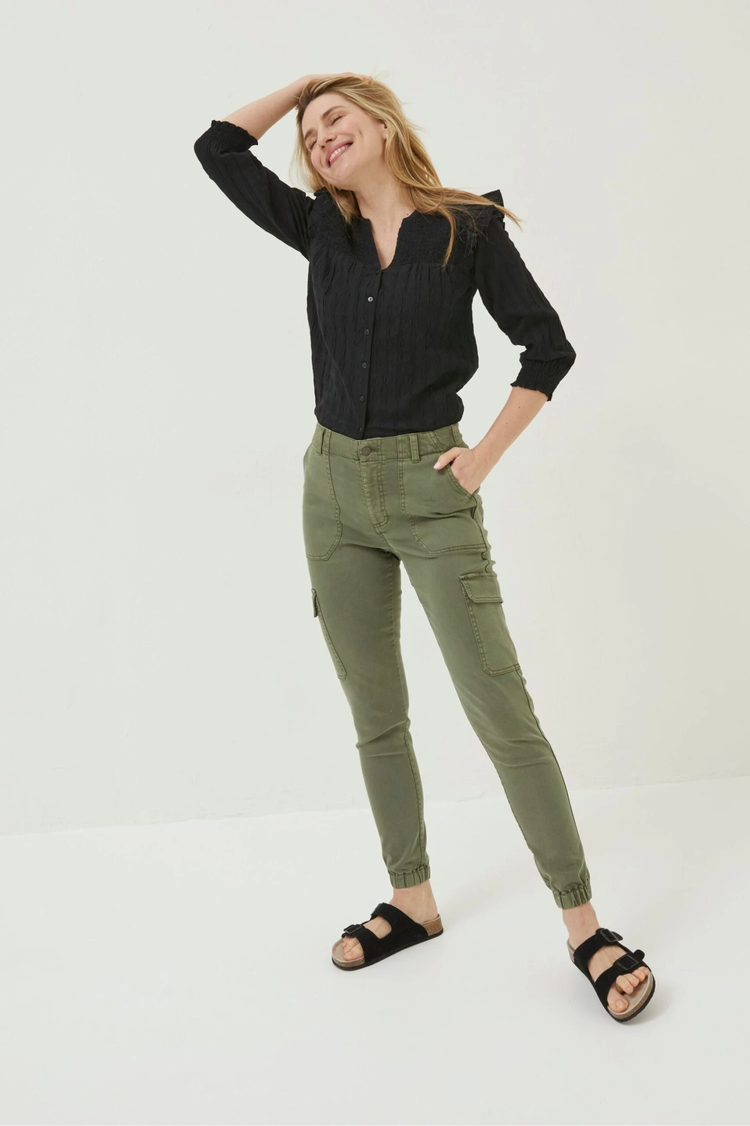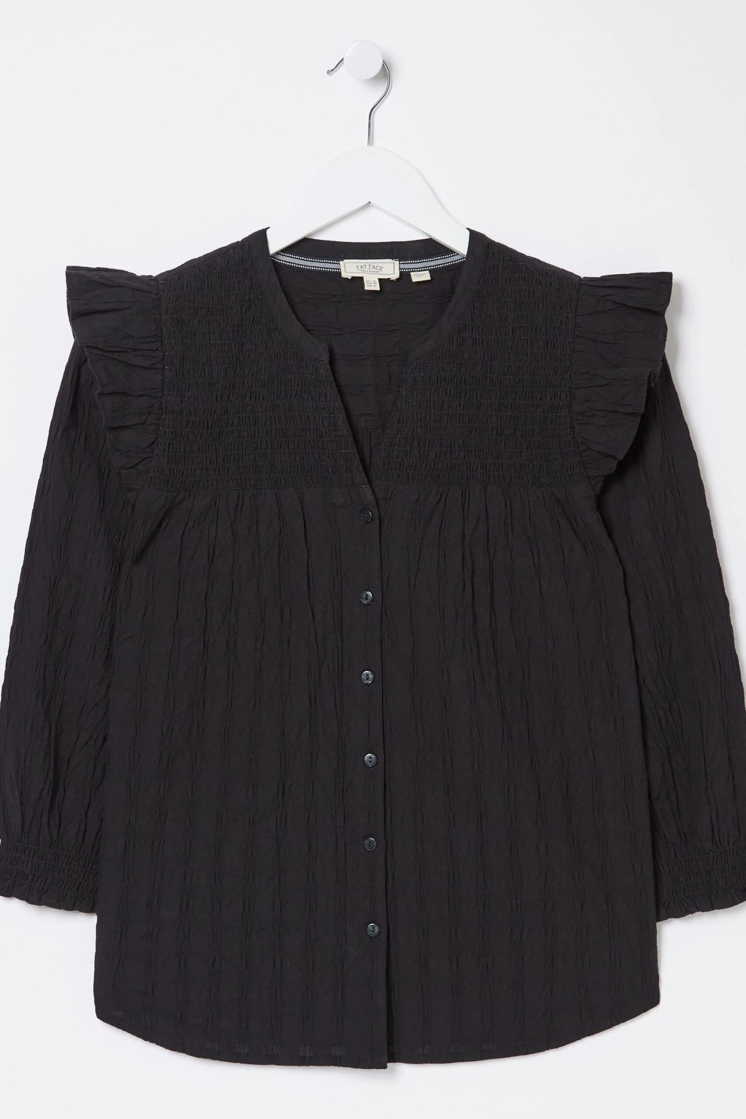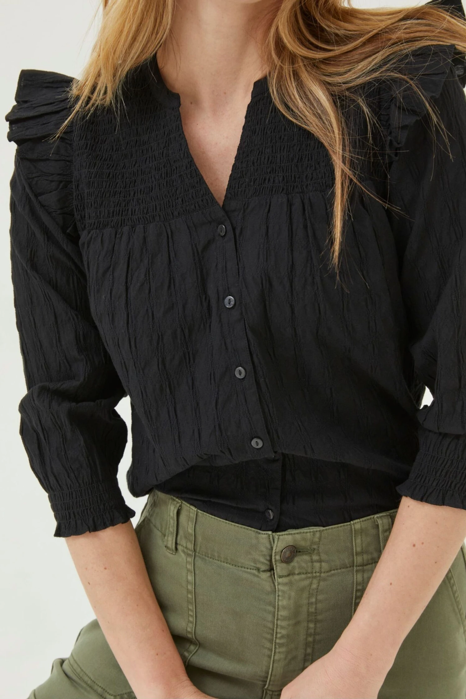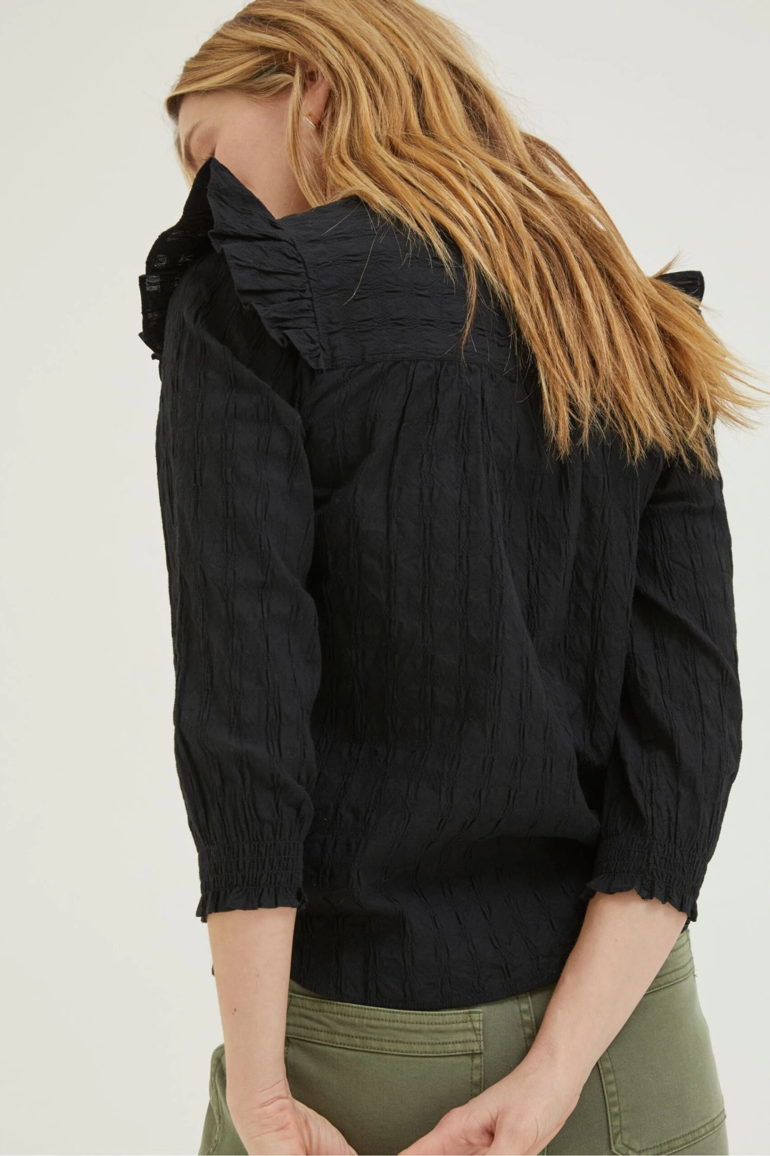 Be daring this season in our Jay frill blouse. Featuring a striking frill shoulder to create a powerful shape, giving you endless confidence! Made in our super soft cotton-elastane blend, you’ll be riding through the year in comfort and style. Featuring shirred cuffs and a full button-down, we’ve ensured the fit is just right for you. Dress it up and brighten those slow office days or keep it lowkey with light denim.