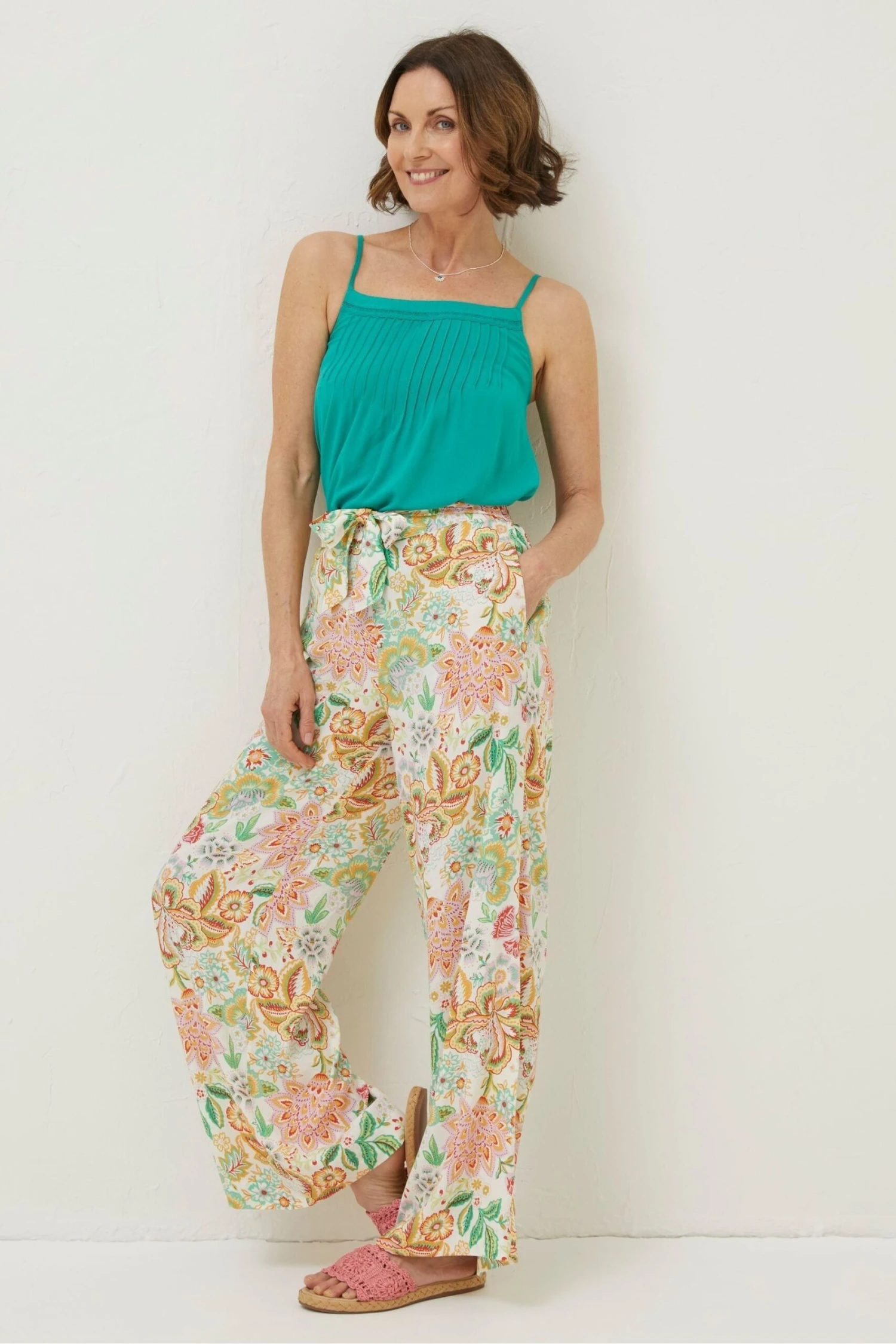 FatFace Natural Faye Paradise Floral Wide Leg Trousers