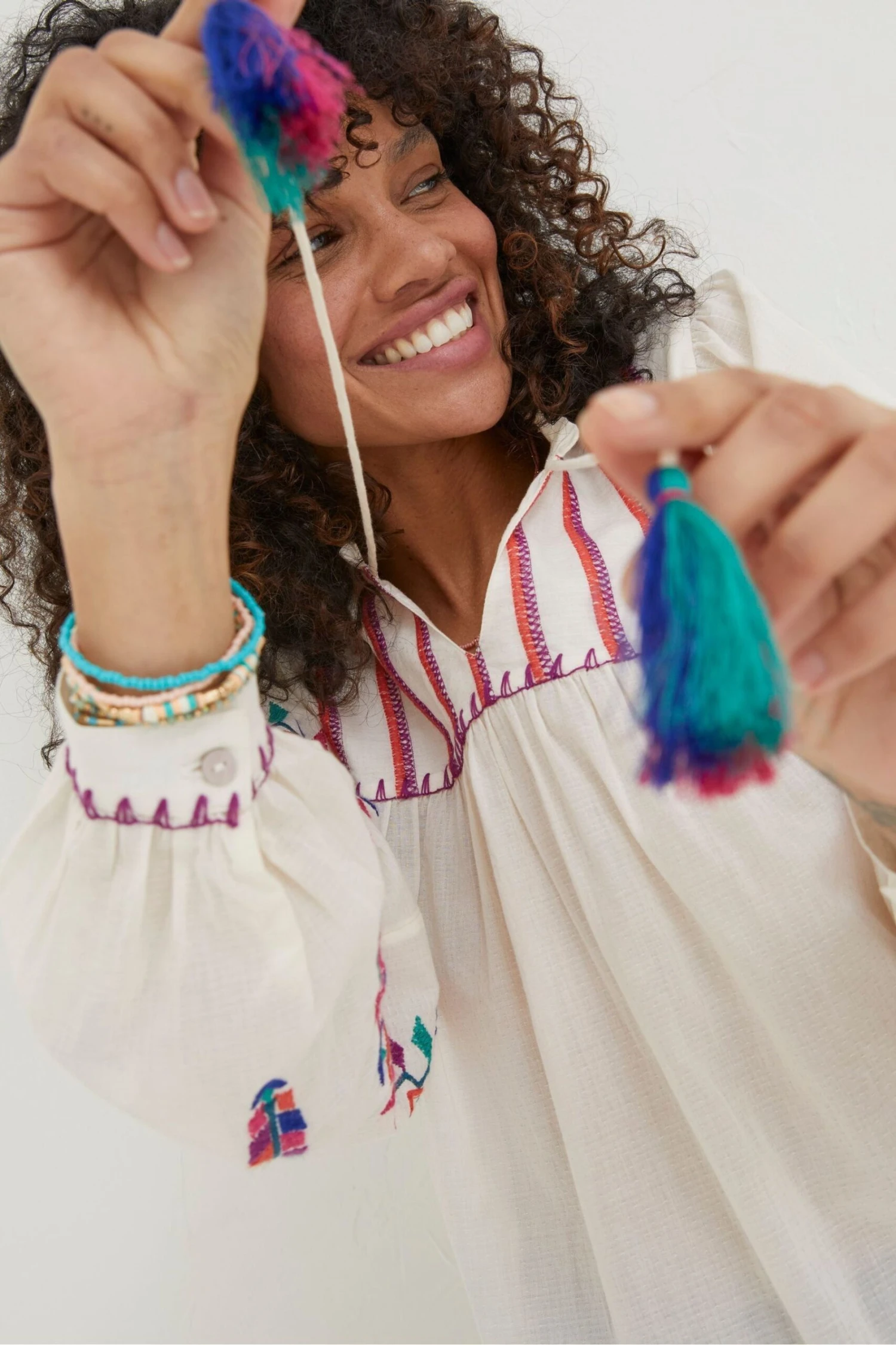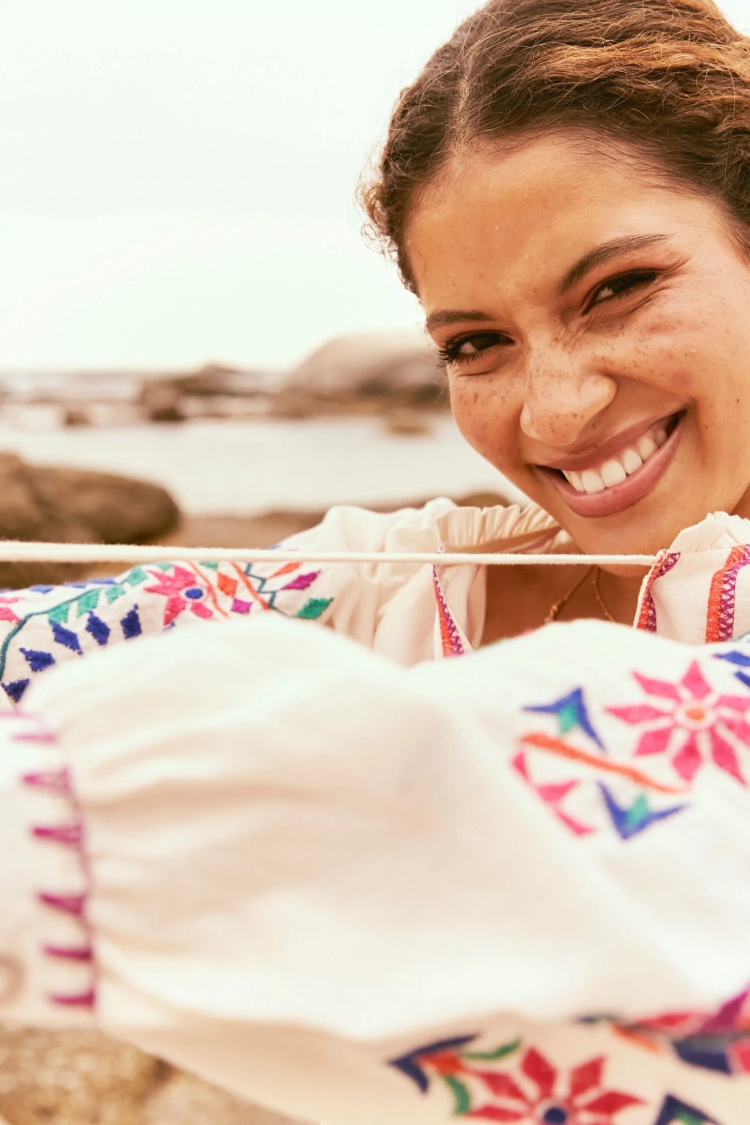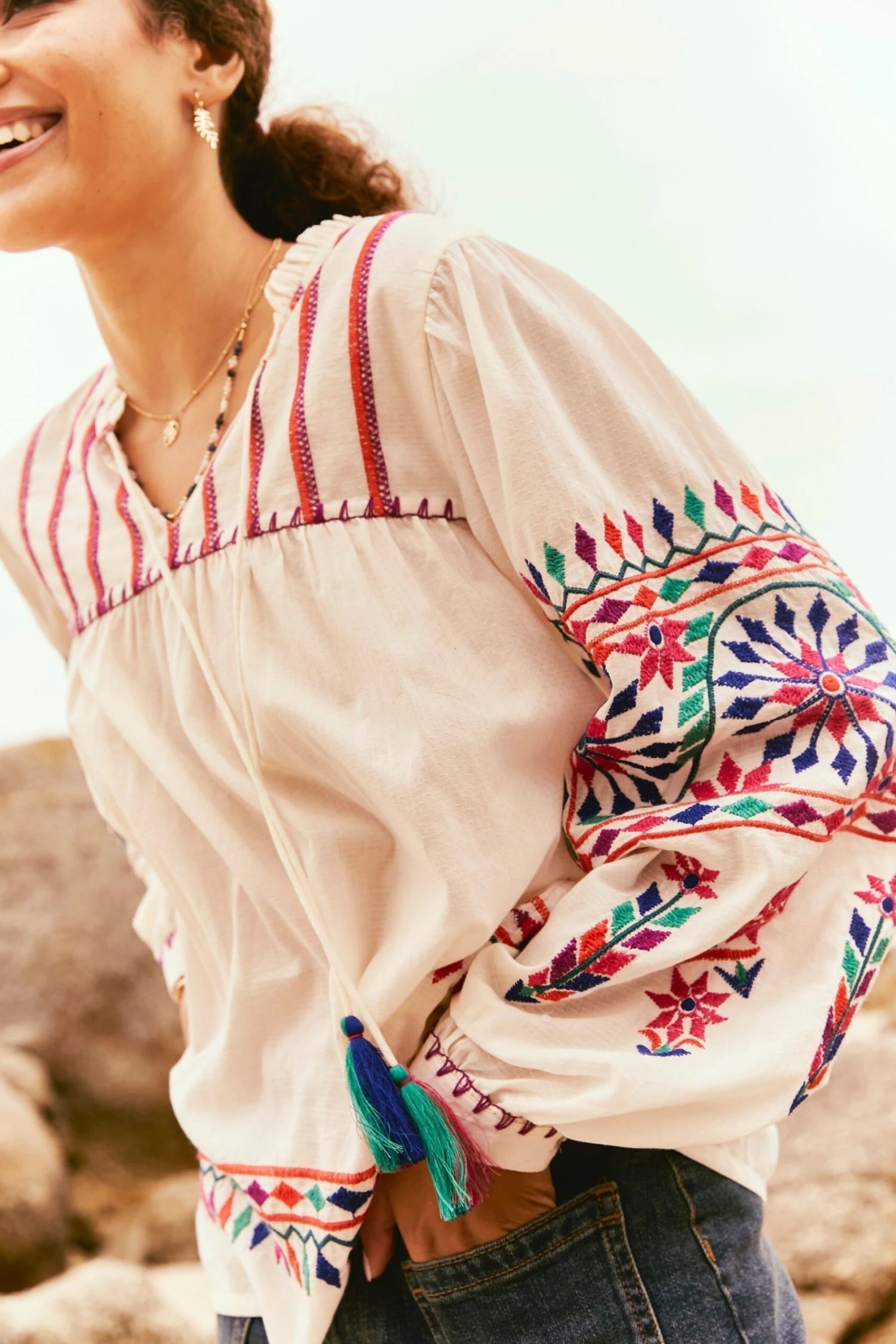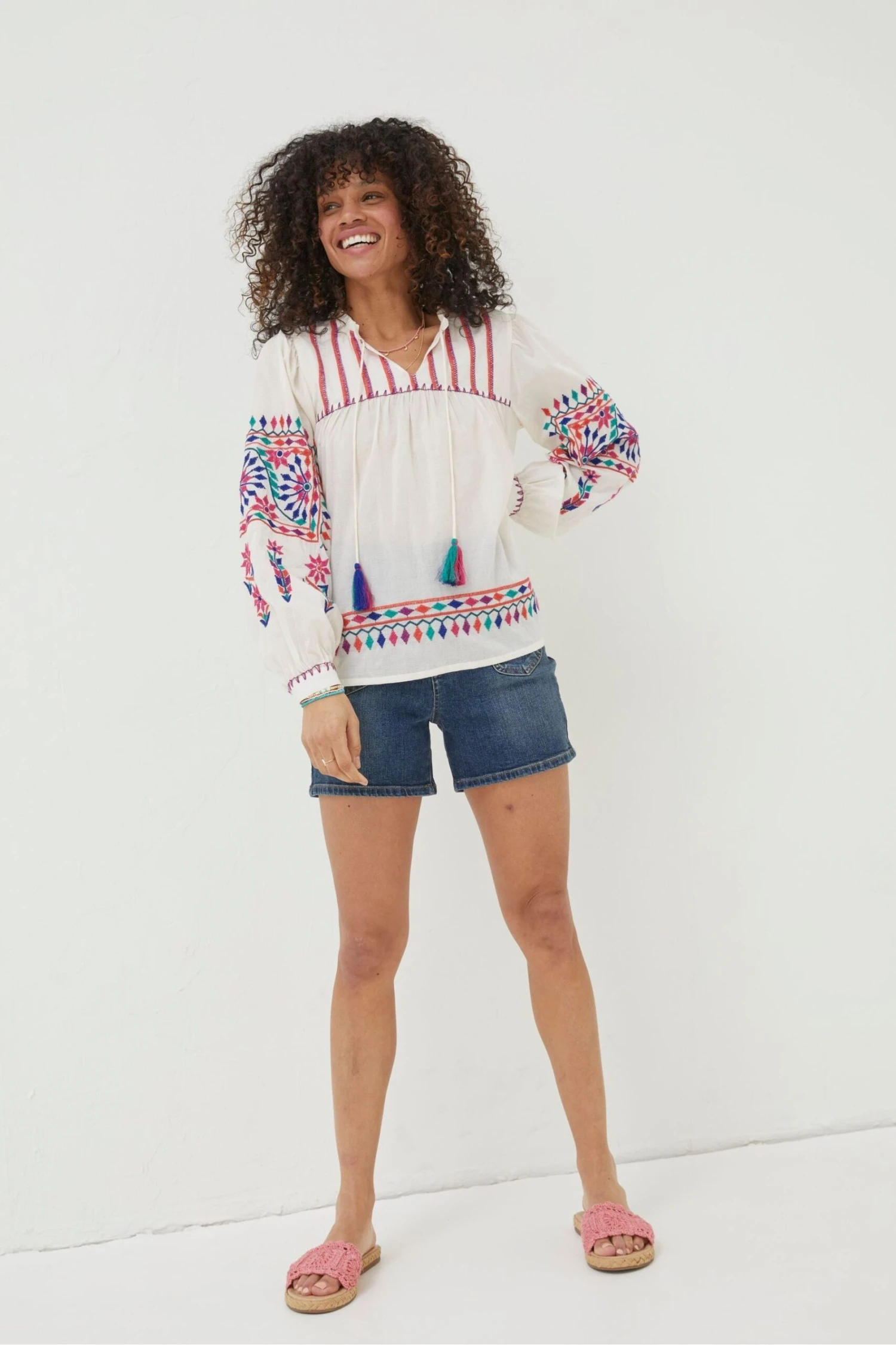 FatFace Natural Ida Embroidered Blouse