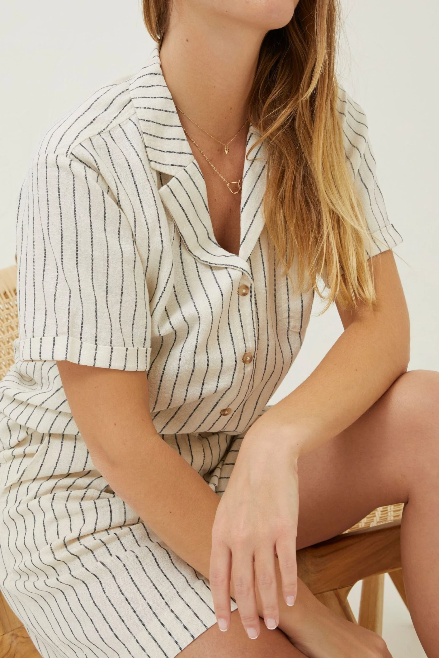 FatFace Natural Mali Linen Blend Stripe Shirt