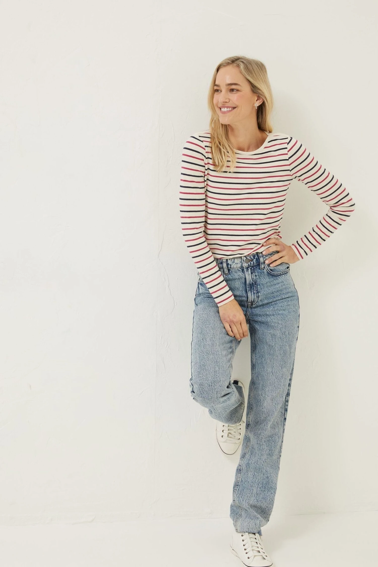 FatFace Natural Multi Breton Organic Cotton T-Shirt