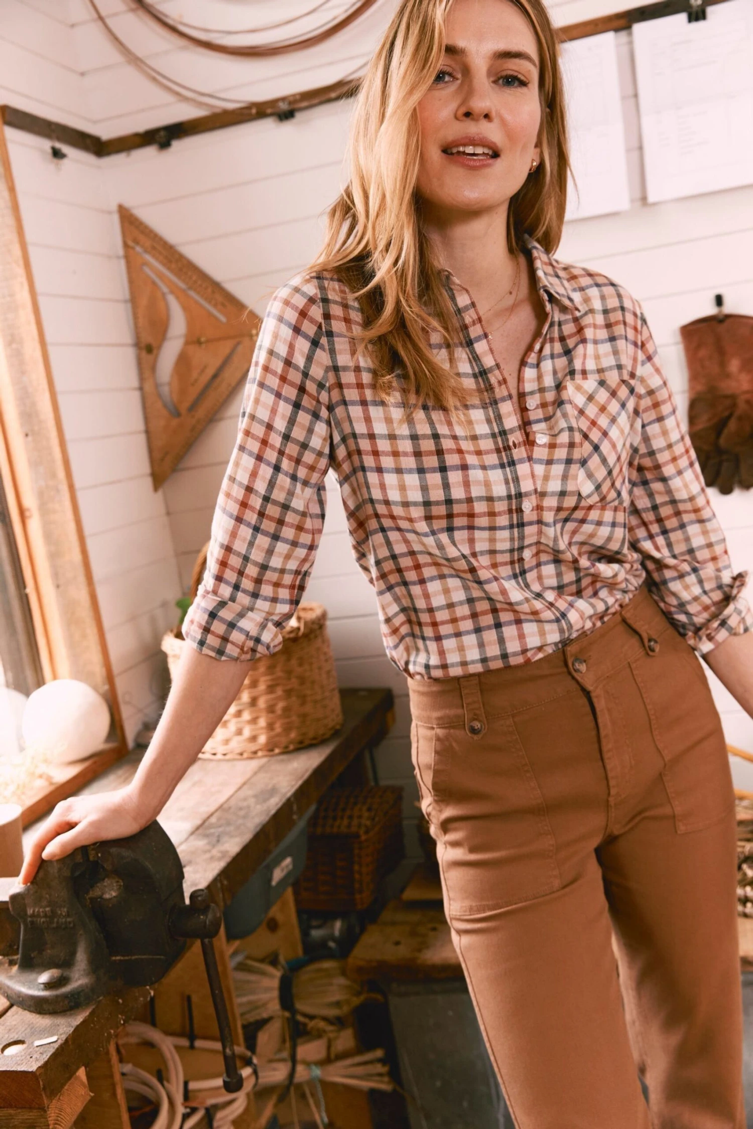 A check shirt is a staple, and our Olivia is the missing piece to your collection. In a gorgeous gingham style check, you’ll love how easy it is to style. With a cute contrast check pocket, relaxed collar and made in our super soft cotton, you’ll soon be packing this one on all your adventures! Embrace the 70’s trend and tuck into flares, create a tie front shirt for warm walks by the sea or wear it open over funky tees, the options are endless.