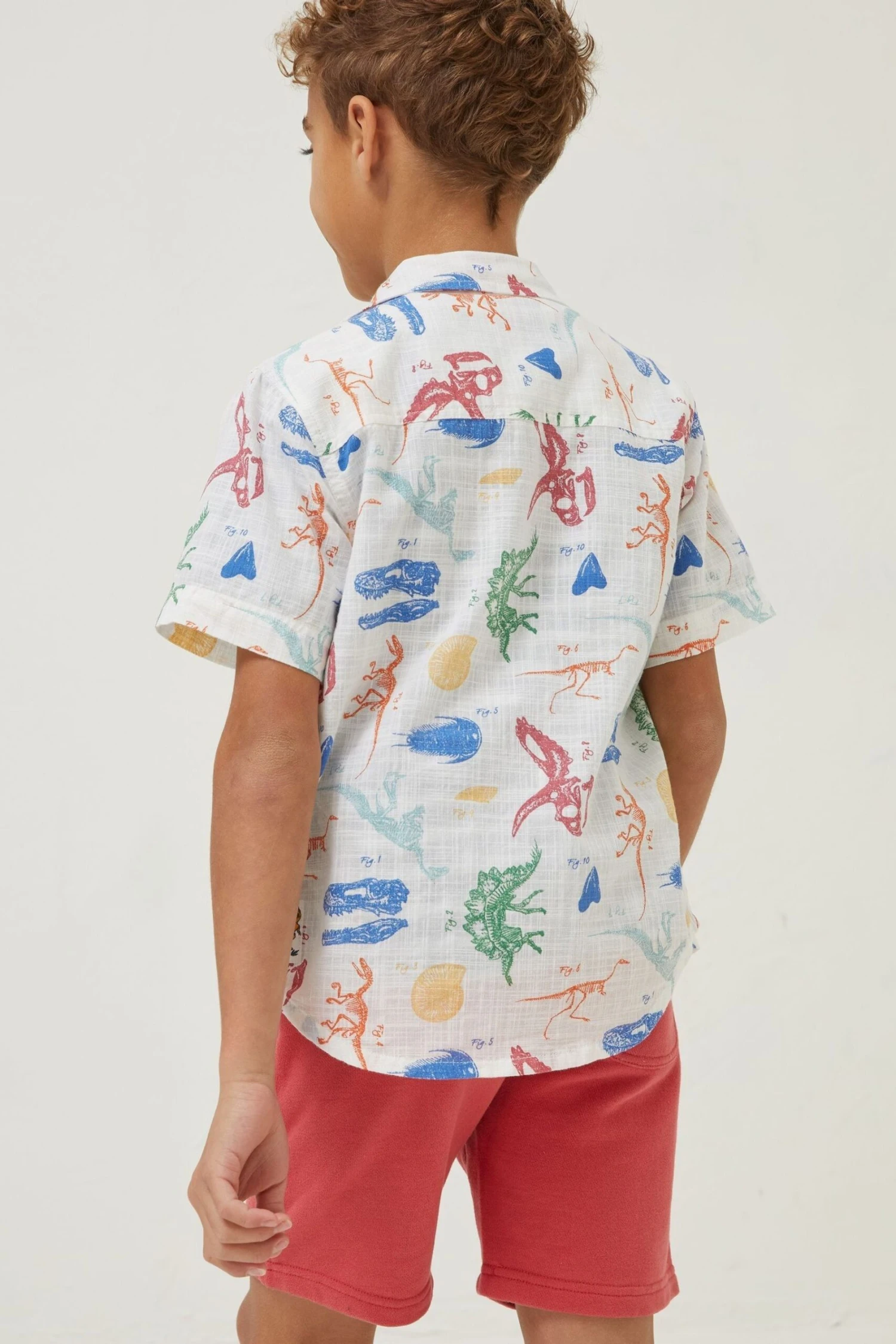 Perfect dressed up or down, this fossil print shirt will brighten up any outfit. Made from 100% supersoft and durable cotton, this comfortable shirt features short sleeves, a button up front and a colourful print. Style it with jeans and trainers, or smarten his look up with trousers and boots.