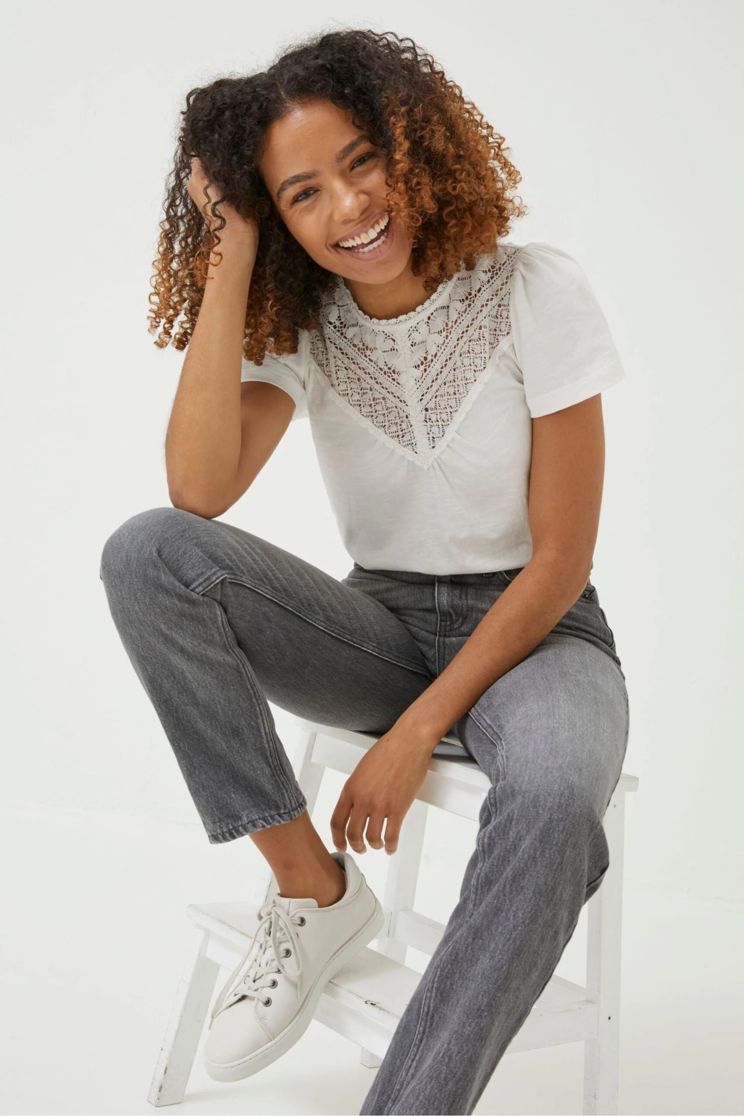 Looking for the perfect versatile top? You’ve found it! Our Yasmin comes with flattering short sleeves, a supersoft feel, and beautiful lace detailing on the neck and chest. Pair it with some denim for a perfect look all year long.