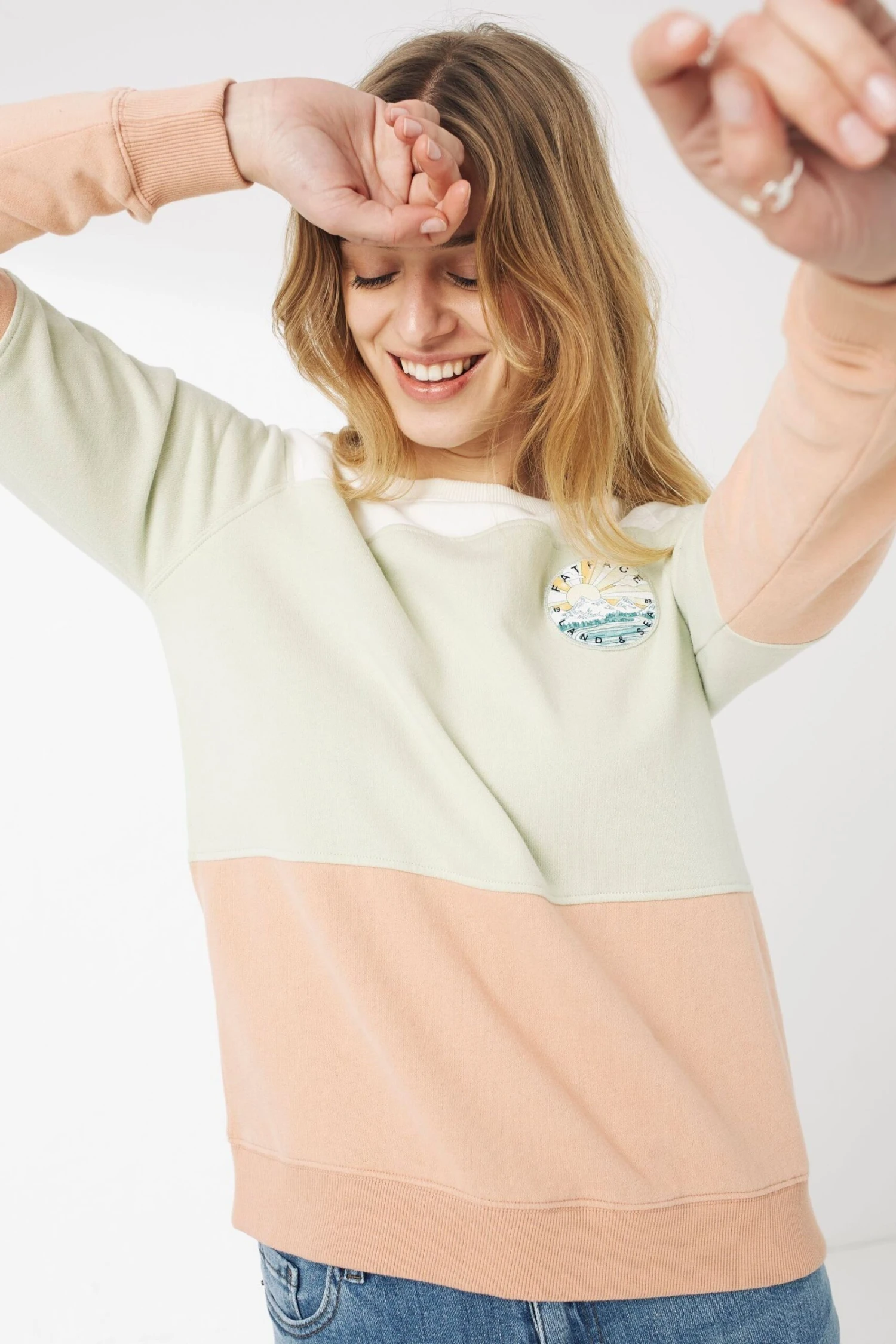 FatFace Orange Becky Colour Block Crew Sweat Top