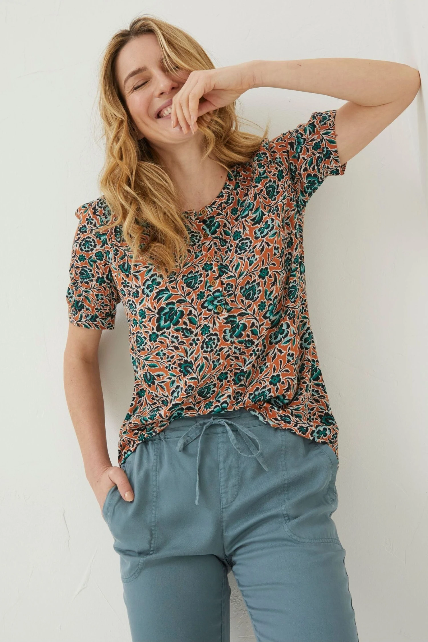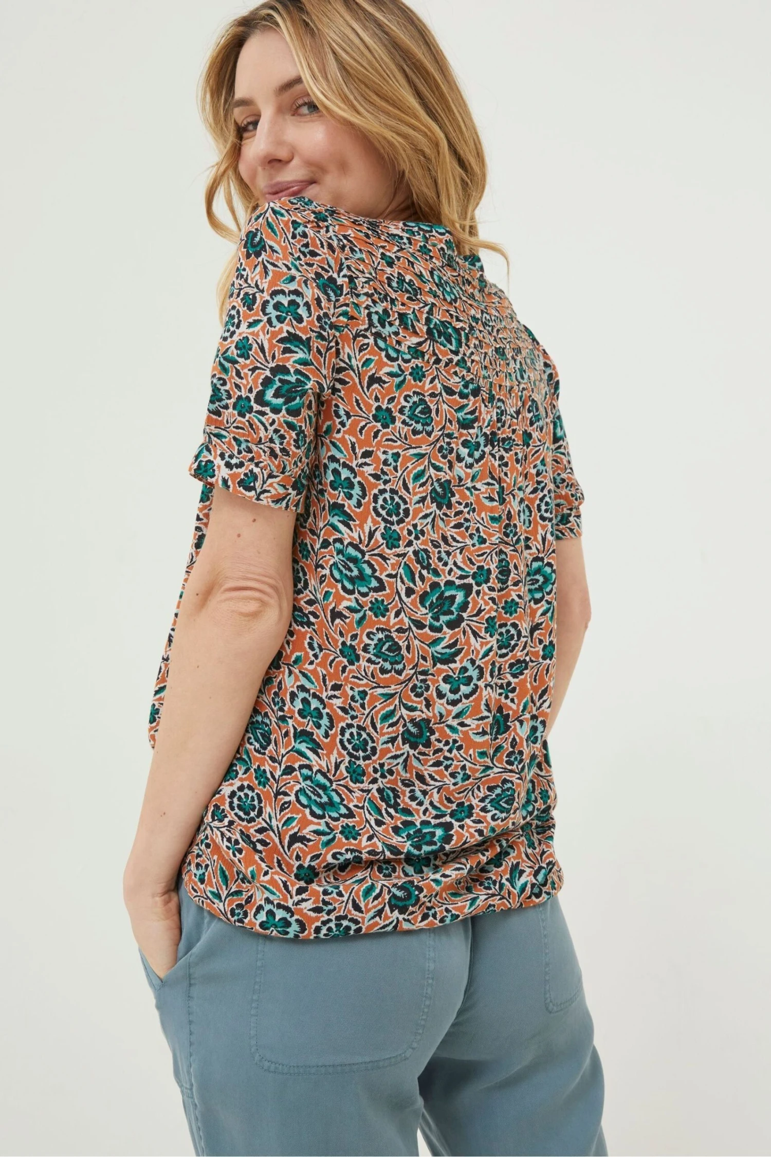 FatFace Orange Jodie Sketched Floral Blouse