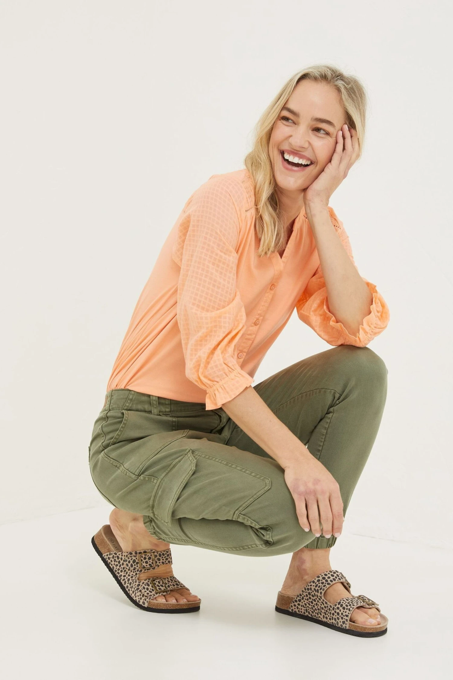 A great blouse to wear with EVERYTHING this season, we love the beautiful fabric and stitch detailing on the shoulders and sleeves, while the button-up neckline makes it really flattering and comfortable to wear. Made with a mix of cotton and modal, it is also is supersoft and breathable.