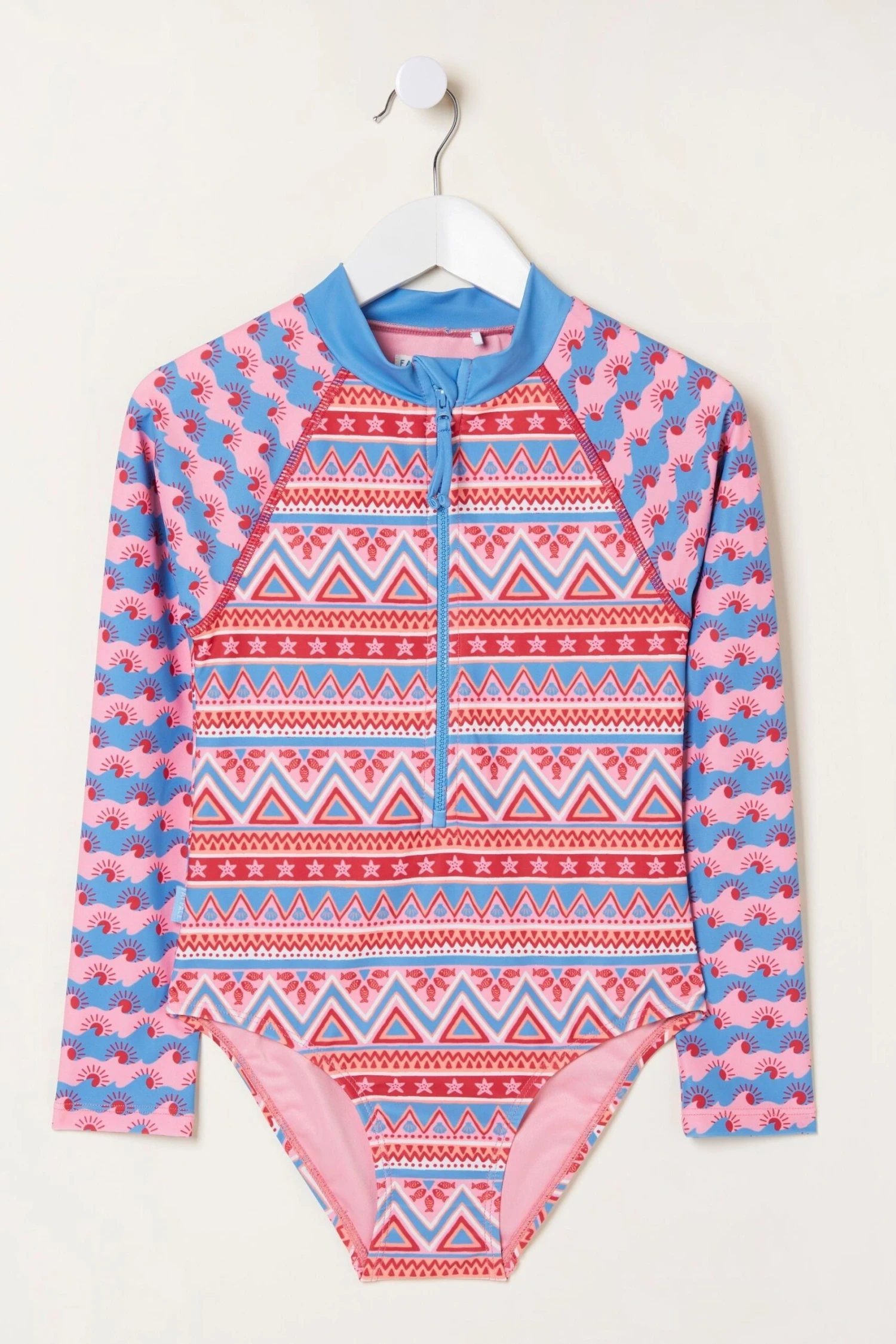 FatFace Pink Aztec Long Sleeve Swimsuit