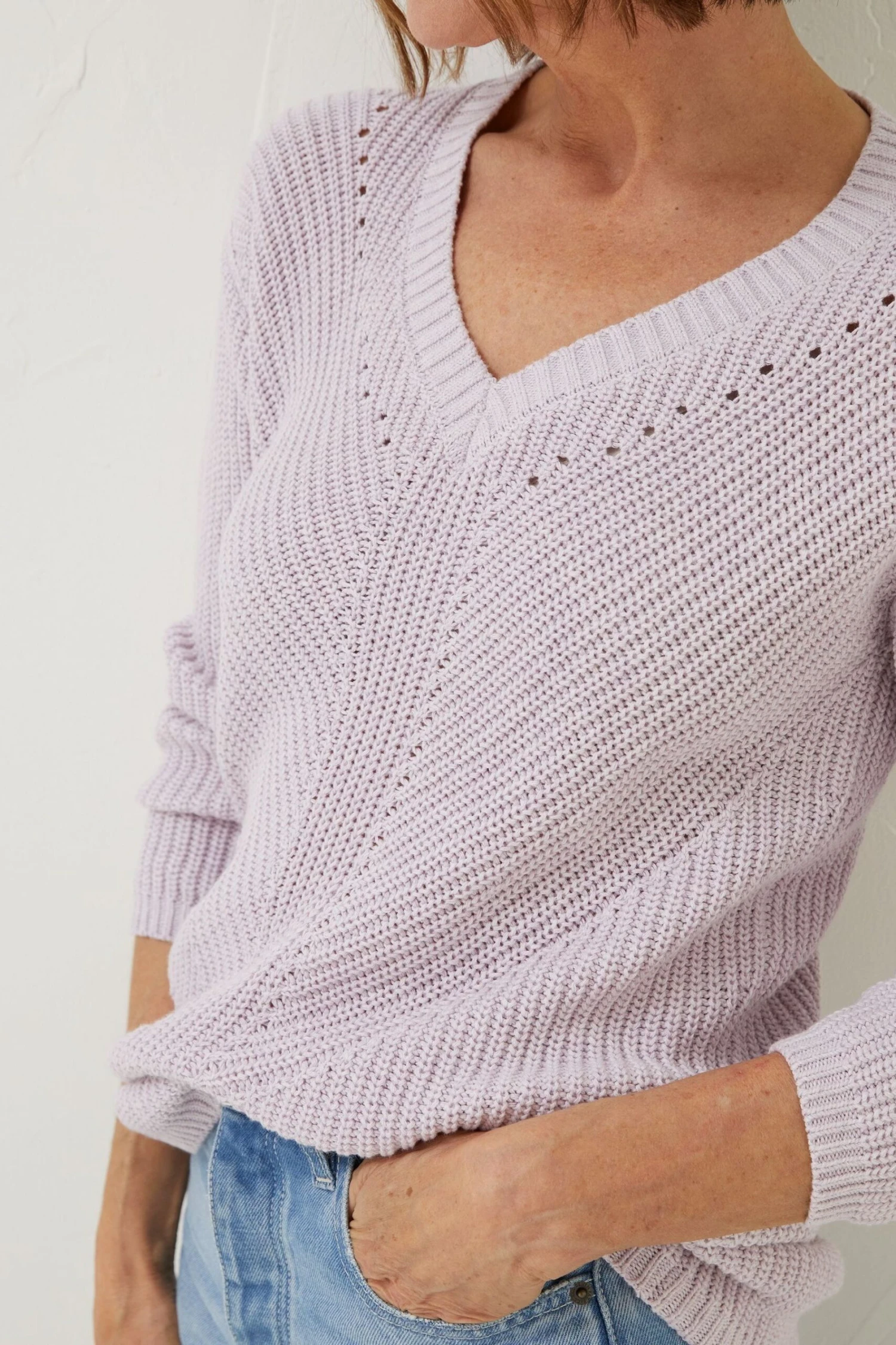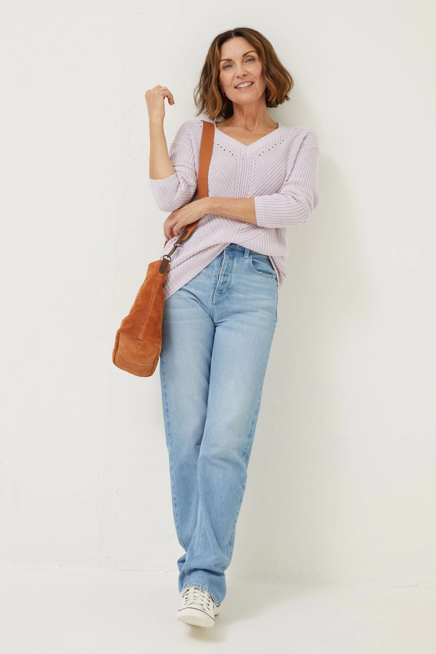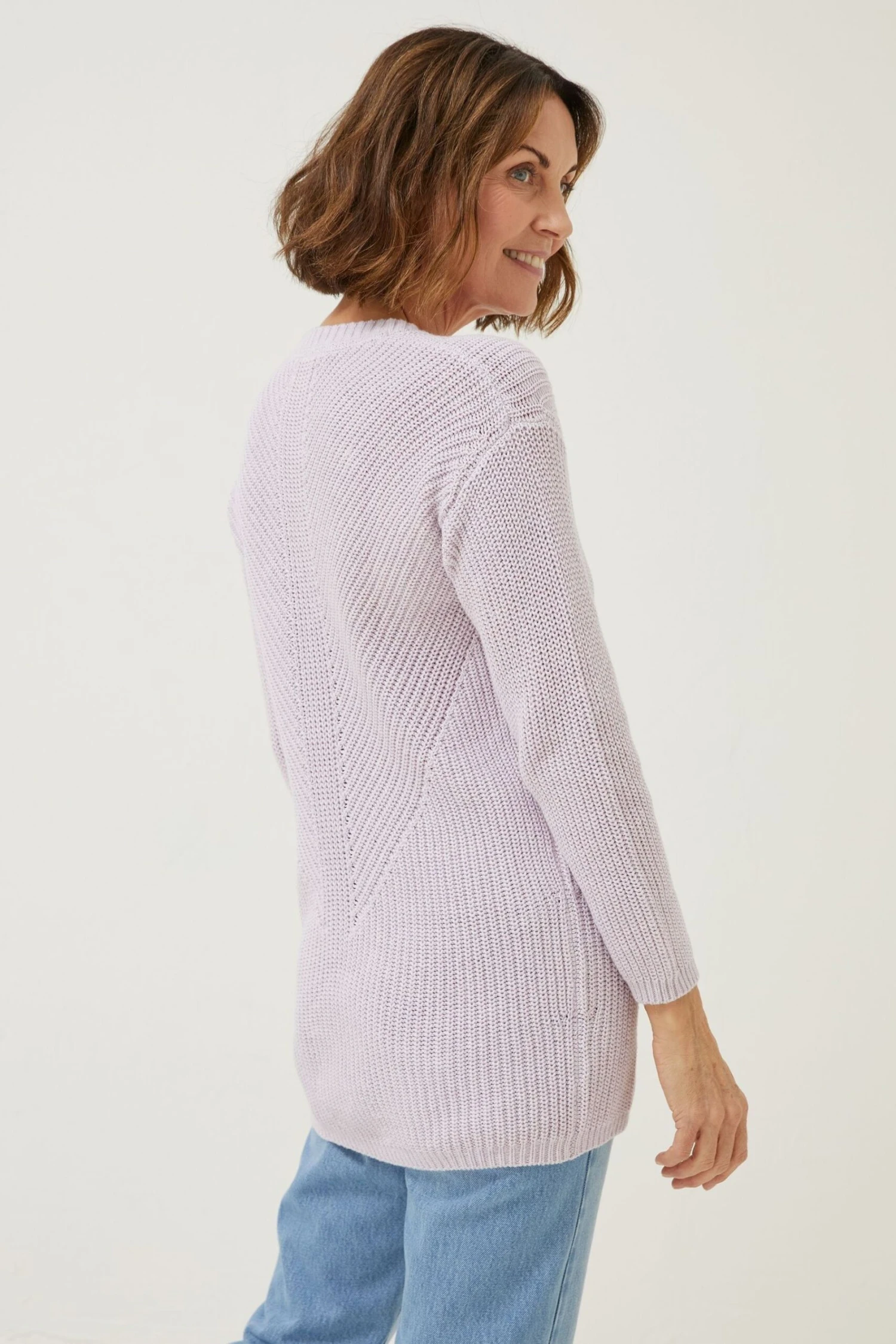 Made from 100% cotton, our Kayleigh jumper is perfect for comfort seekers with no wool in sight. Featuring a plunging V neckline and longer body length, it’s the ultimate piece to take you through the seasons in a beautiful breathable cotton. Wear her in endless outfits, over the shoulders or layered with frilly shirts, she’s the knit that keeps on giving!