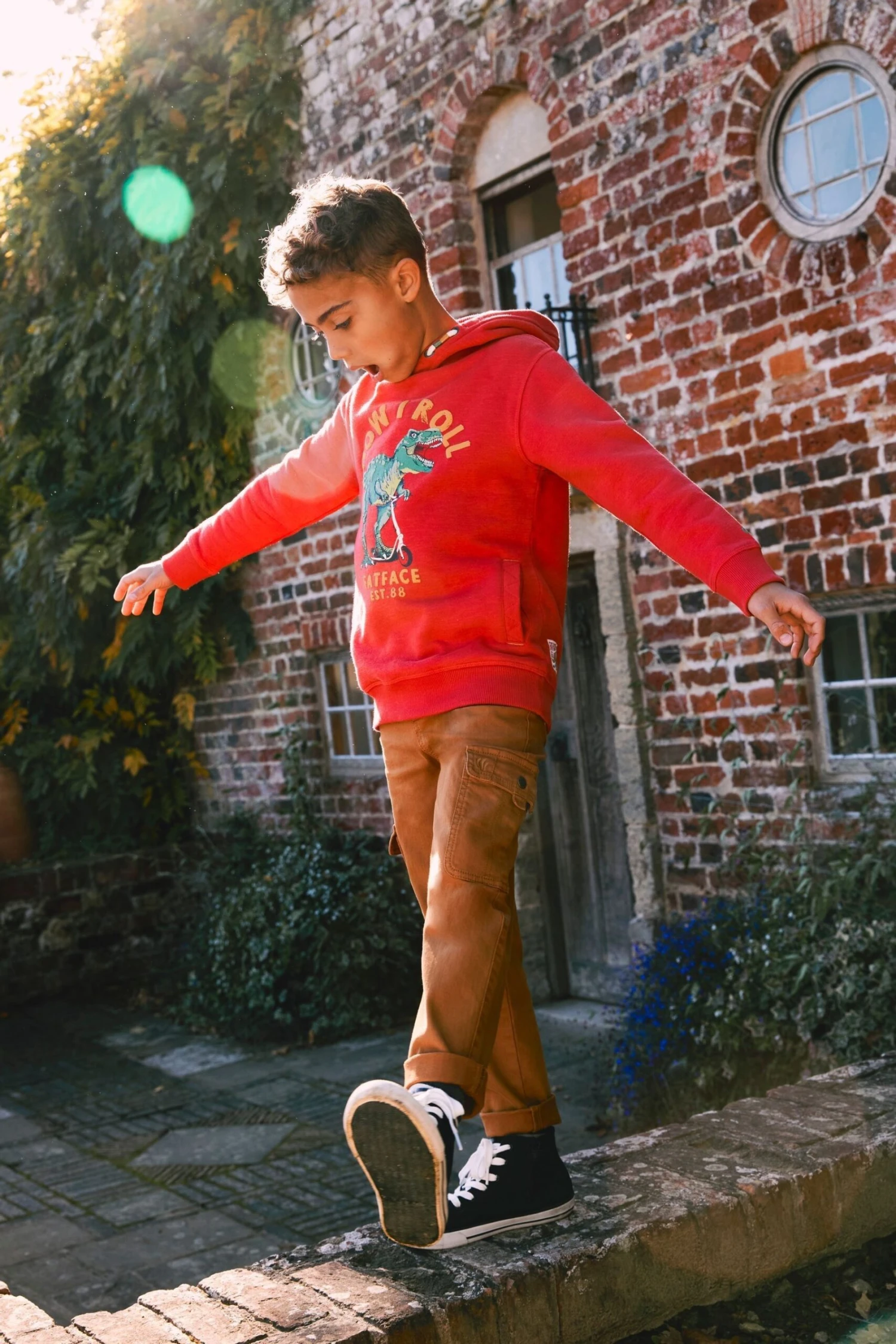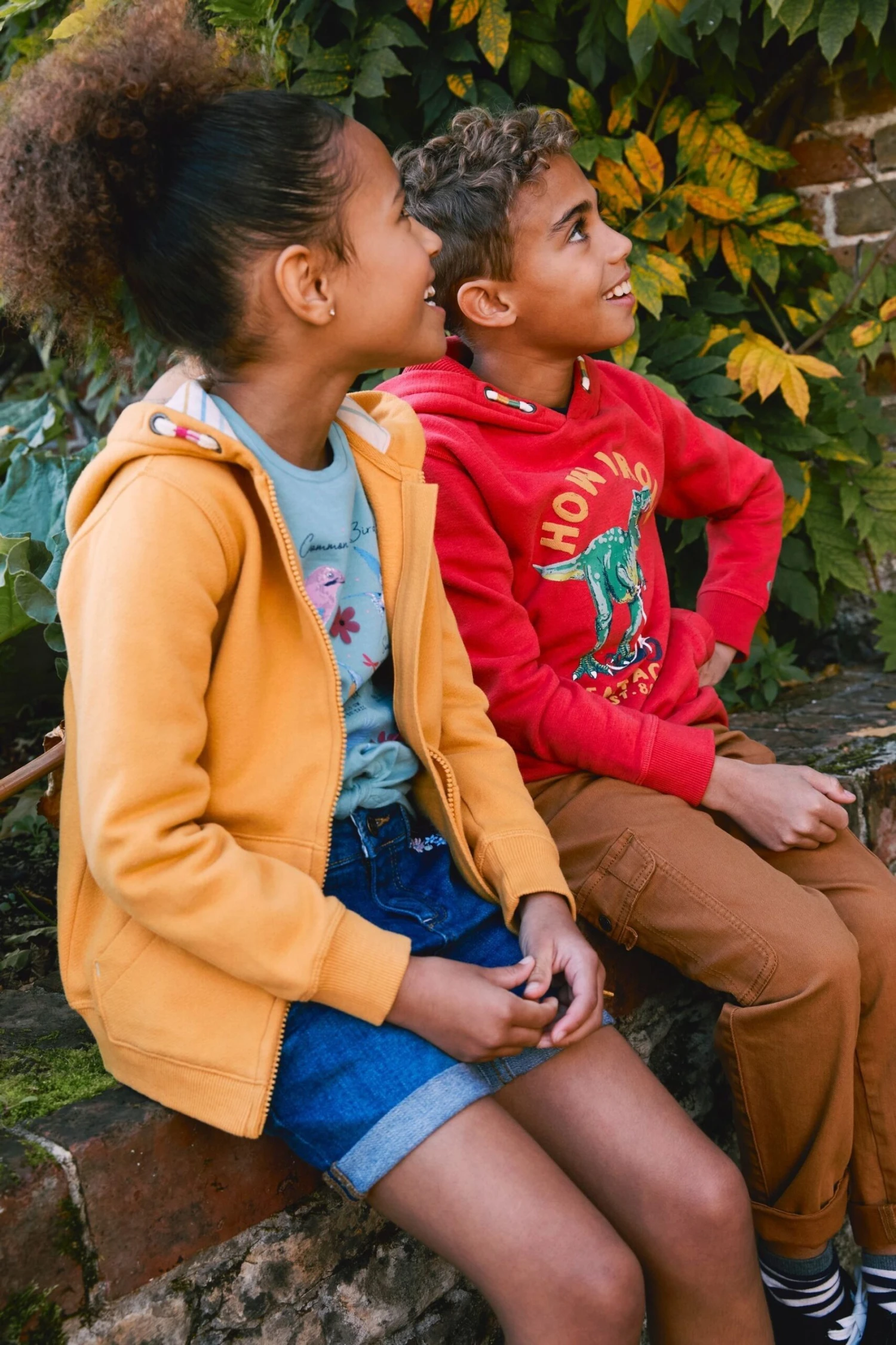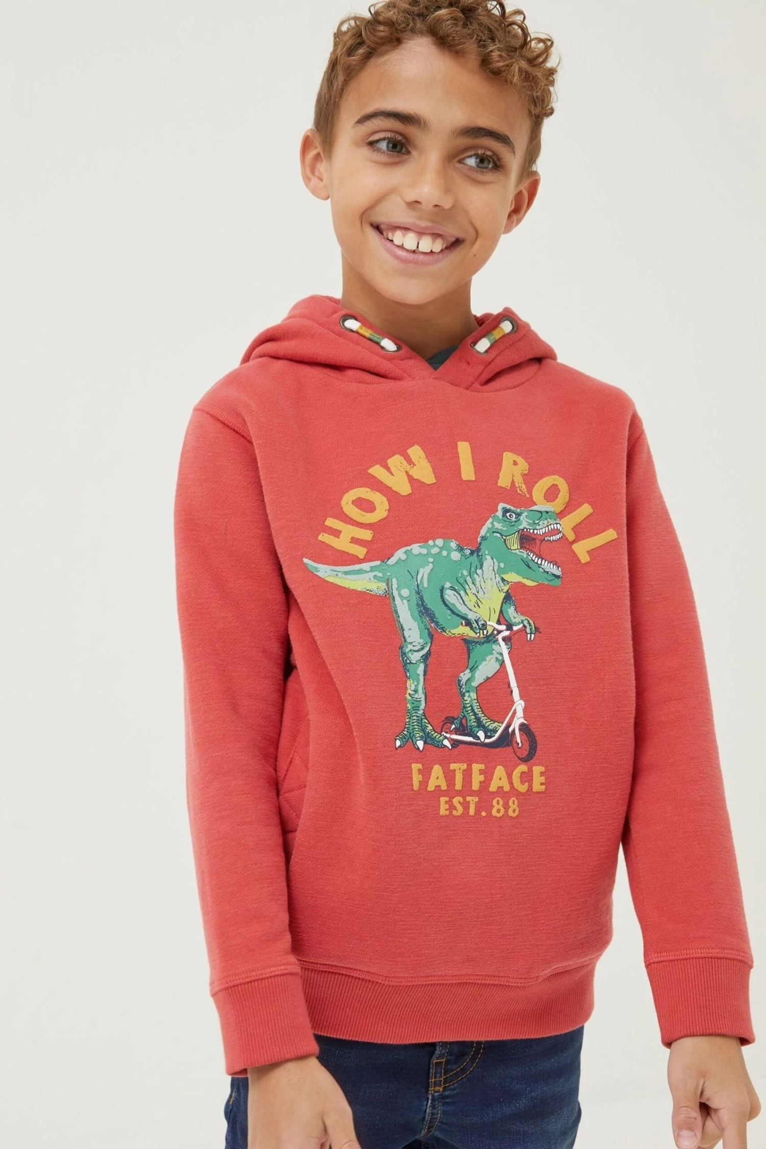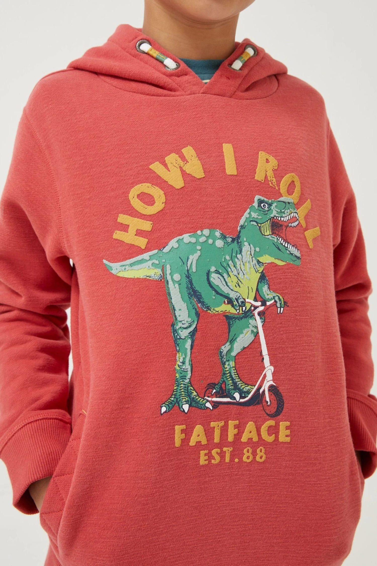 Layer them up in this cool graphic hoodie. Complete with an awesome ‘How I roll’ slogan print and dinosaur graphic, it comes with ribbed cuffs and hem, and a cosy hood to lock out the chill. Pair it with a simple t-shirt, jeans and trainers.