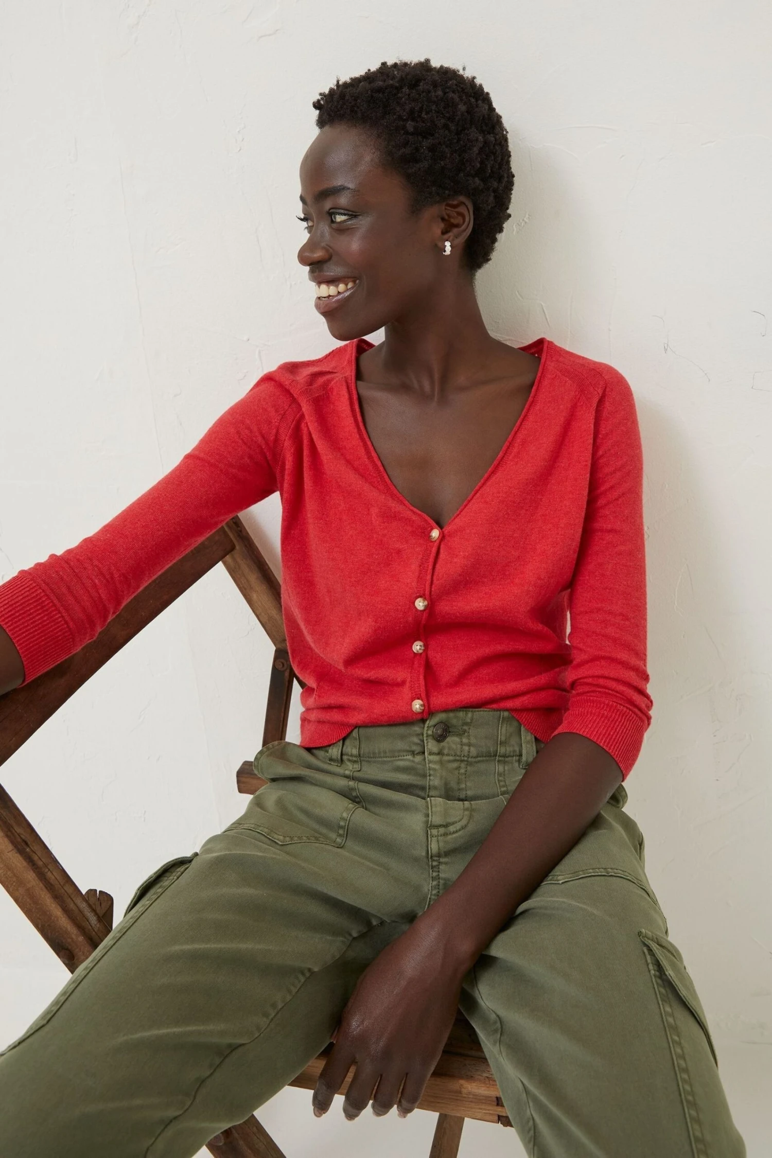 In a comfortable yet flattering fit, this cardigan is the perfect layer of warmth on casual days. Complete with three-quarter length sleeves, tortoiseshell button fastening, a v-neckline and ribbed cuffs and hem. It looks great layered over a simple tee with smart trousers and boots.
