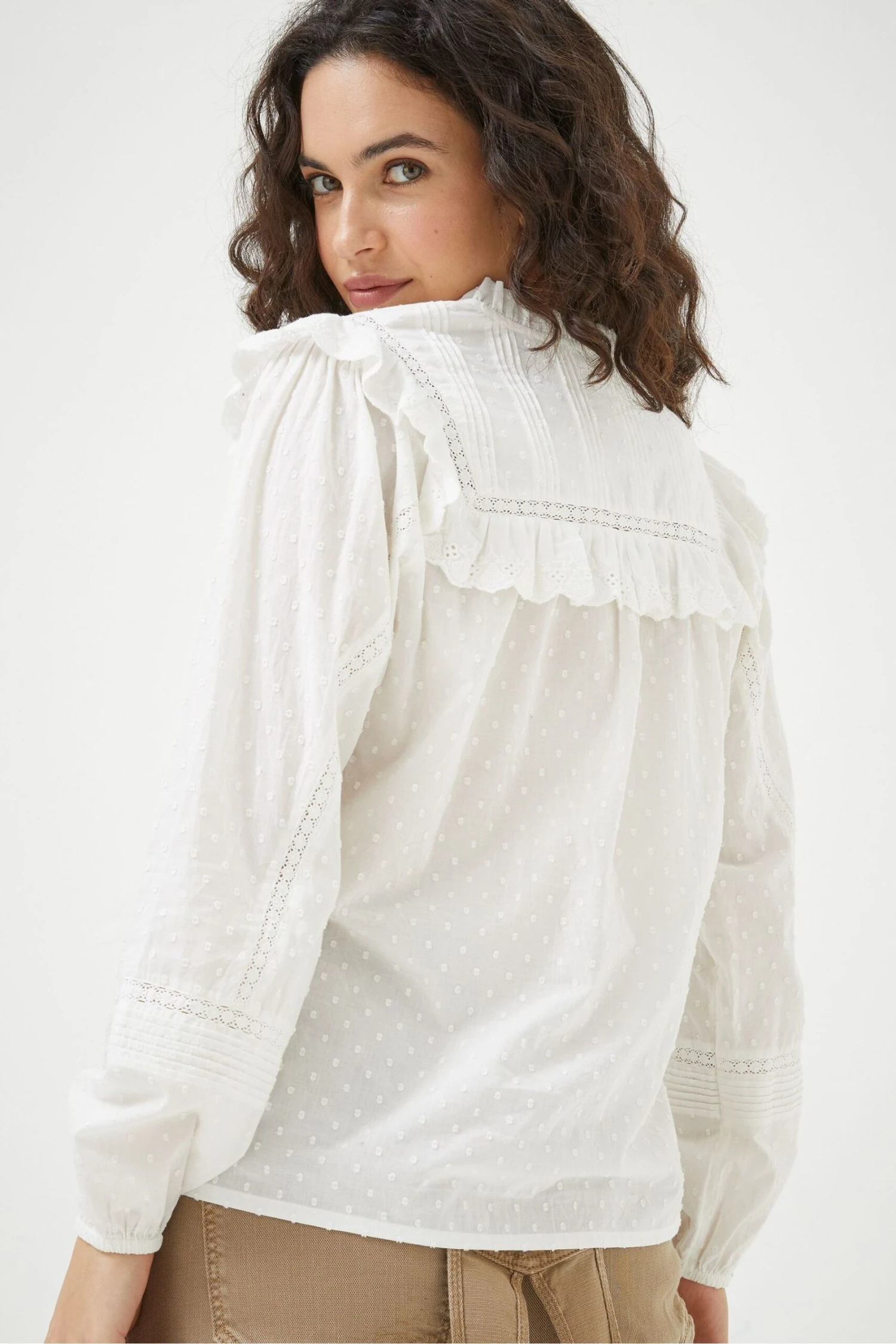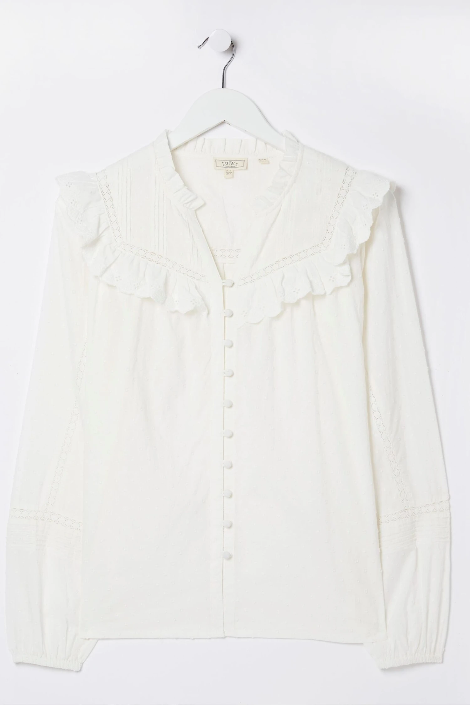 FatFace Rowan White Frill Blouse
