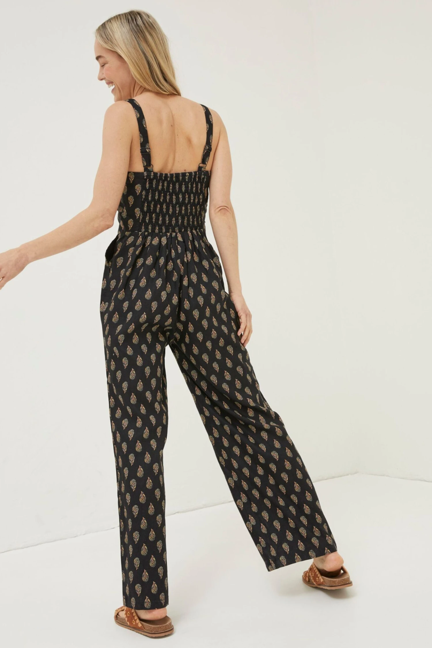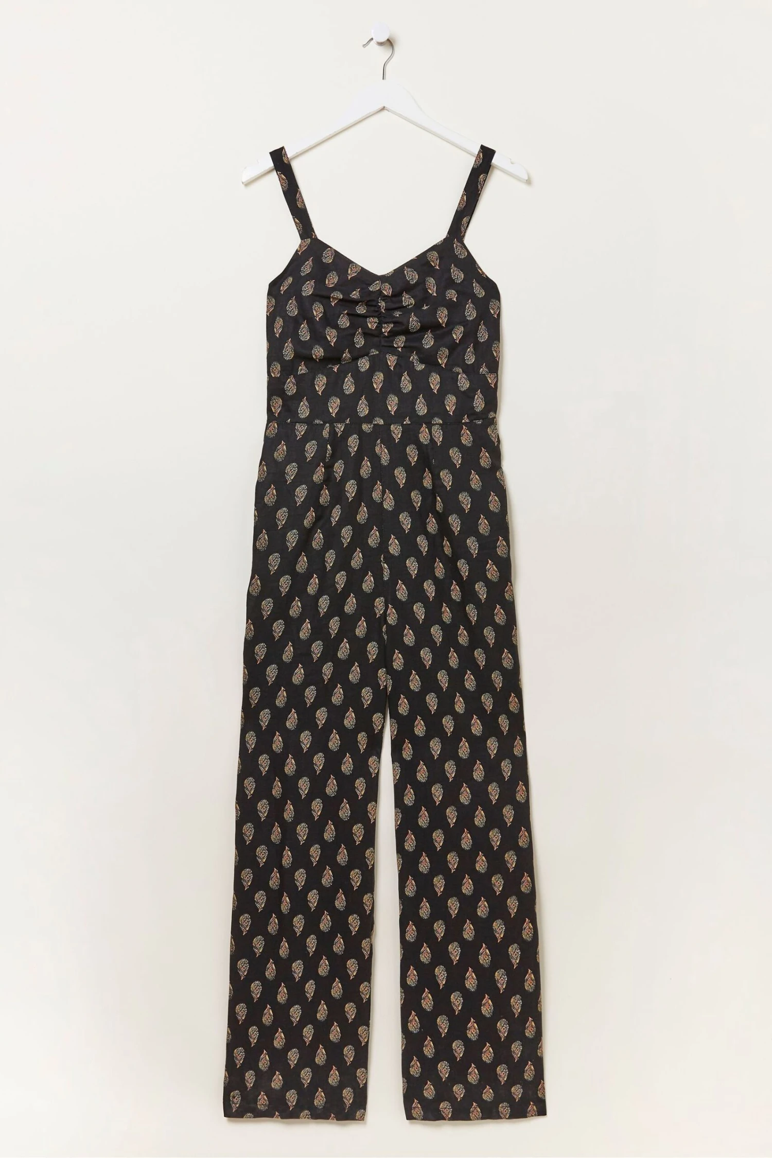 FatFace Vic Linen Woodblock Black Jumpsuit
