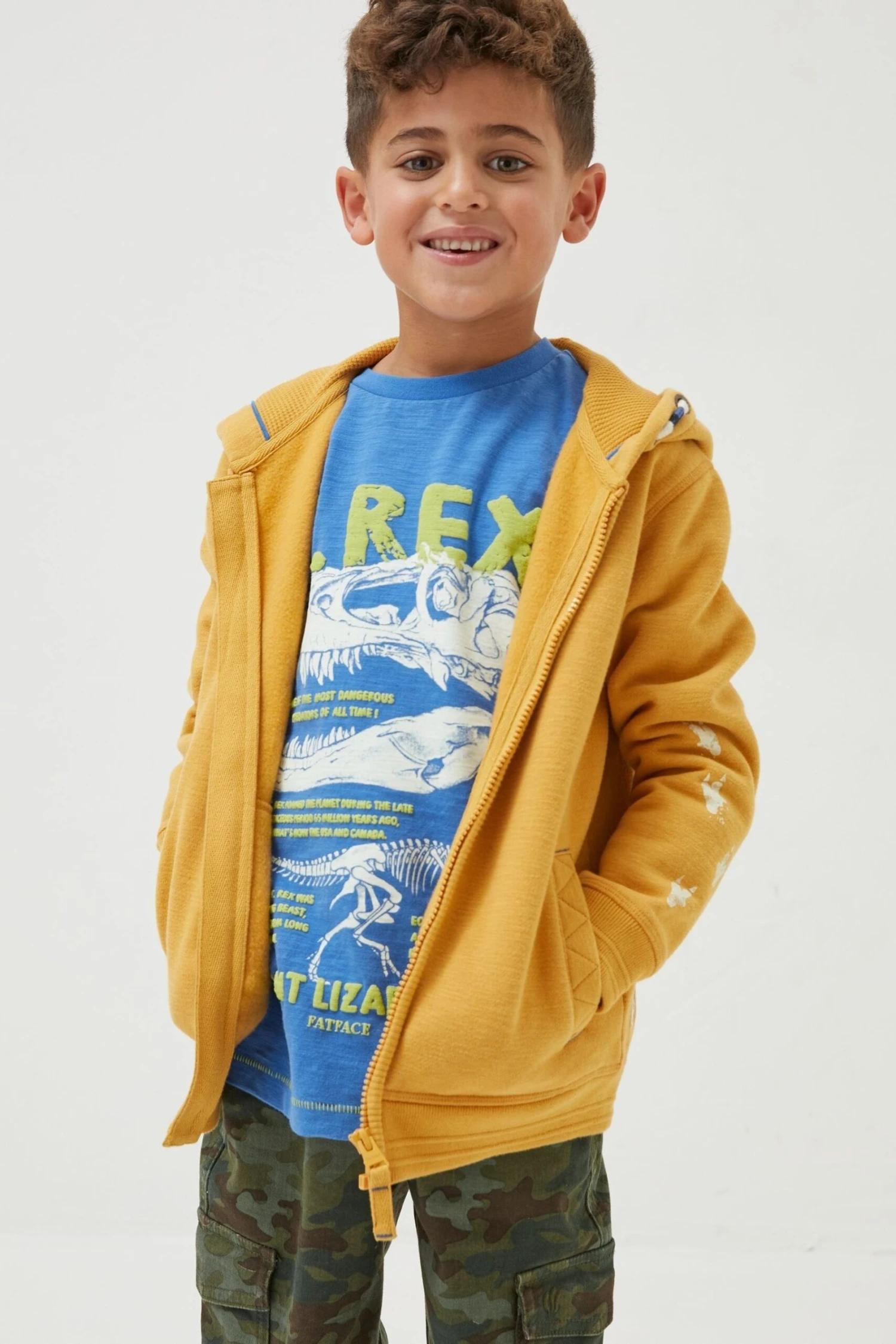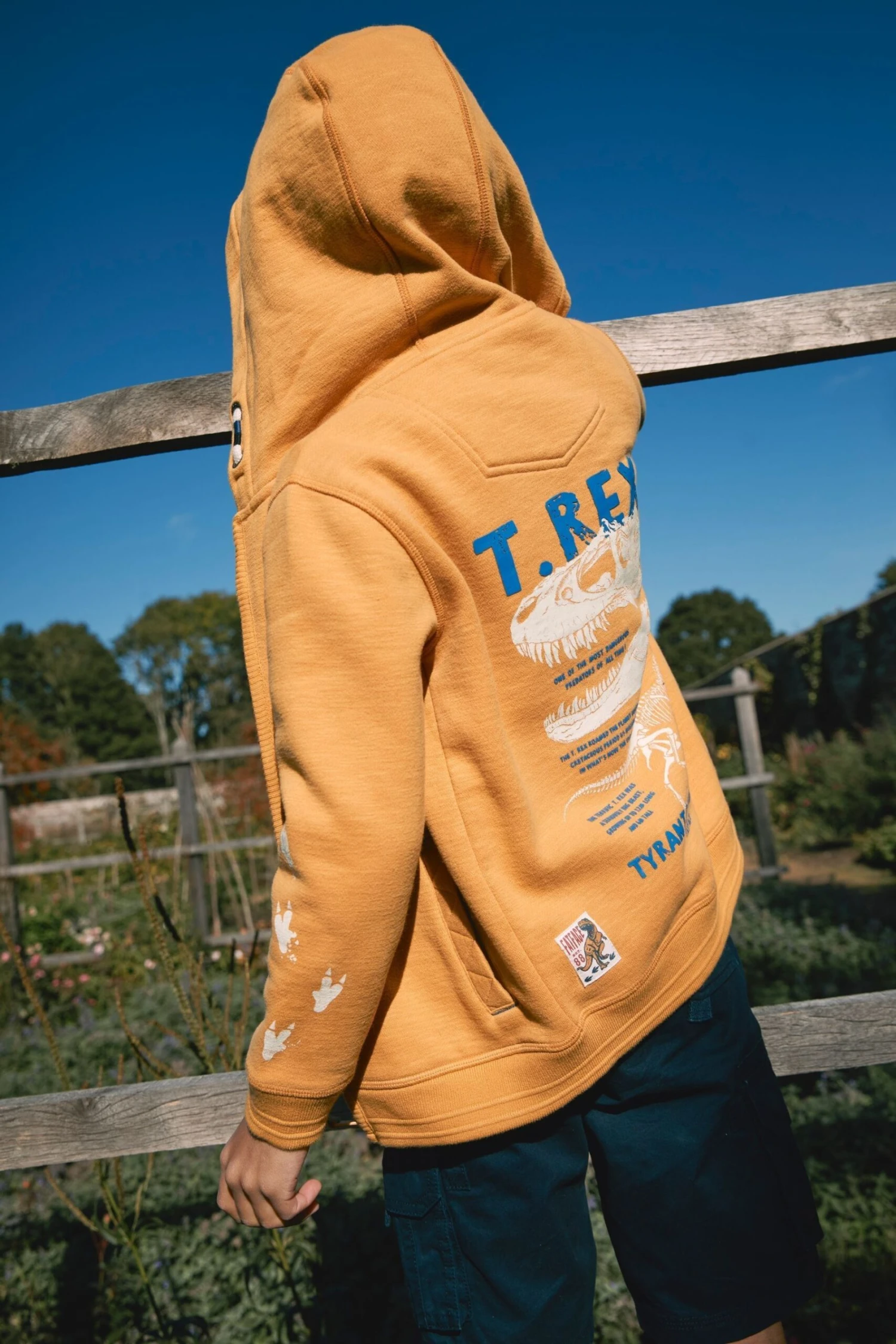 Keep him cosy in this super cool glow in the dark hoodie. Made from soft and comfy cotton, it features ribbed cuffs and hem to lock in the warmth, handy side pockets, zip through fastening for easy dressing, a hood and an awesome glow in the dark T Rex graphic. Style over a t-shirt with jeans and trainers.